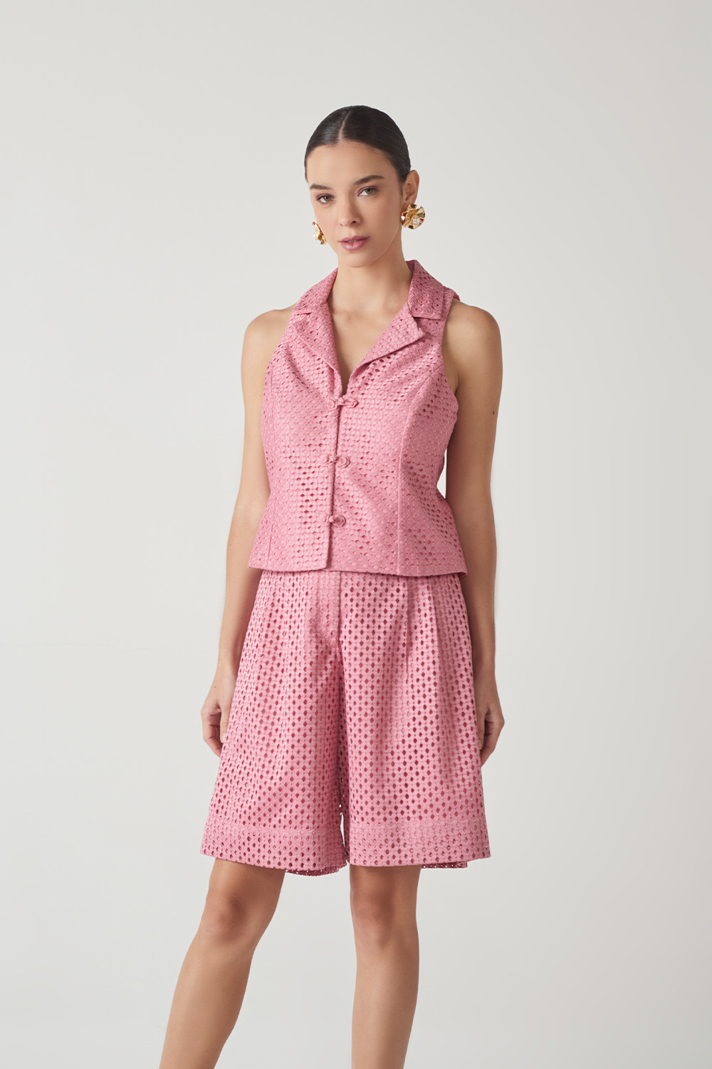 Leve, elegante e absolutamente atual ✨, a Bermuda Áurea em laise é a tradução perfeita de sofisticação para os dias quentes. Confeccionada em laise delicada, ela traz textura e frescor na medida certa, criando um visual feminino e refinado sem esforço 🤍. O cós transpassado, com abotoamento interno, garante acabamento limpo e impecável, enquanto as pregas frontais acrescentam estrutura e um toque de alfaiataria moderna à peça. Totalmente forrada, a bermuda oferece conforto, segurança e excelente caimento, valorizando a silhueta com leveza e elegância. Em um tom de azul suave e atemporal, é aquela peça versátil que transita com facilidade entre produções casuais sofisticadas e looks mais arrumados para compromissos diurnos.