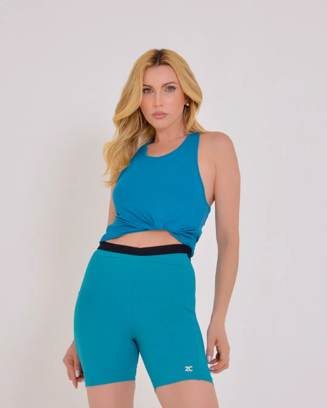 Dica de estilo: combine a Bermuda com Elástico com um top estruturado ou uma t-shirt cropped fitness, criando um look esportivo equilibrado e sofisticado, perfeito para musculação, funcional ou até um treino ao ar livre.
