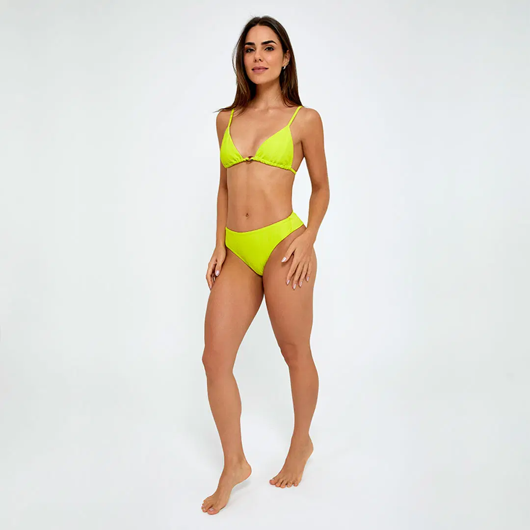 Ficha técnica: confeccionado em tecido de alta elasticidade com toque macio, top triângulo com regulagem, calcinha com bumbum duplo para maior conforto e segurança, cor amarelo neon, produção nacional, lavar à mão com sabão neutro e secar à sombra para preservar cor e elasticidade.