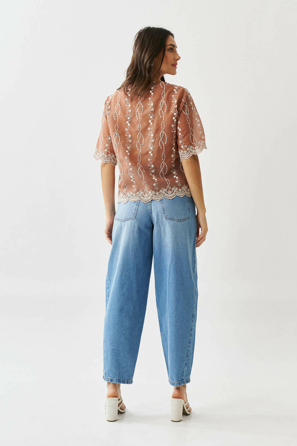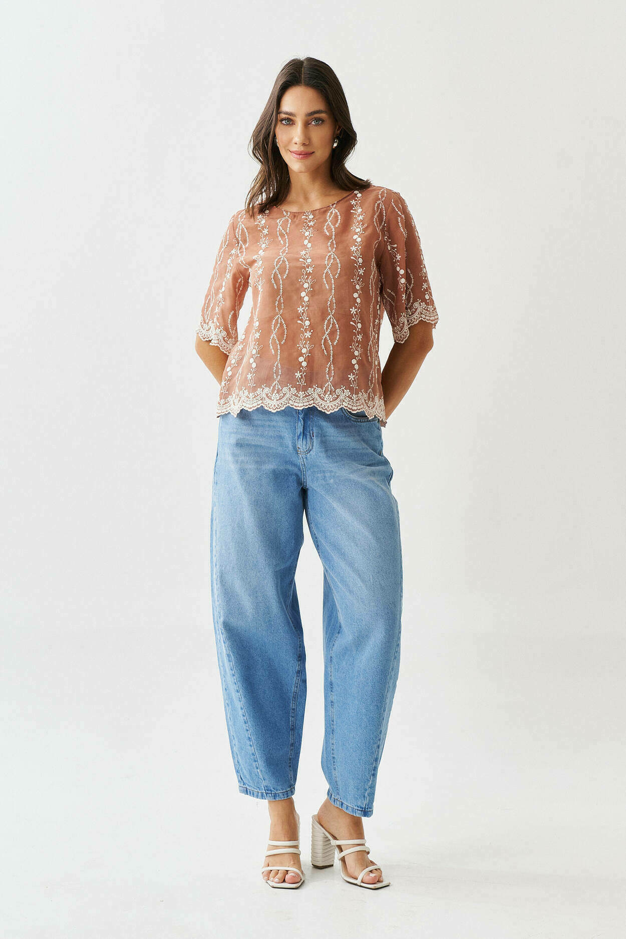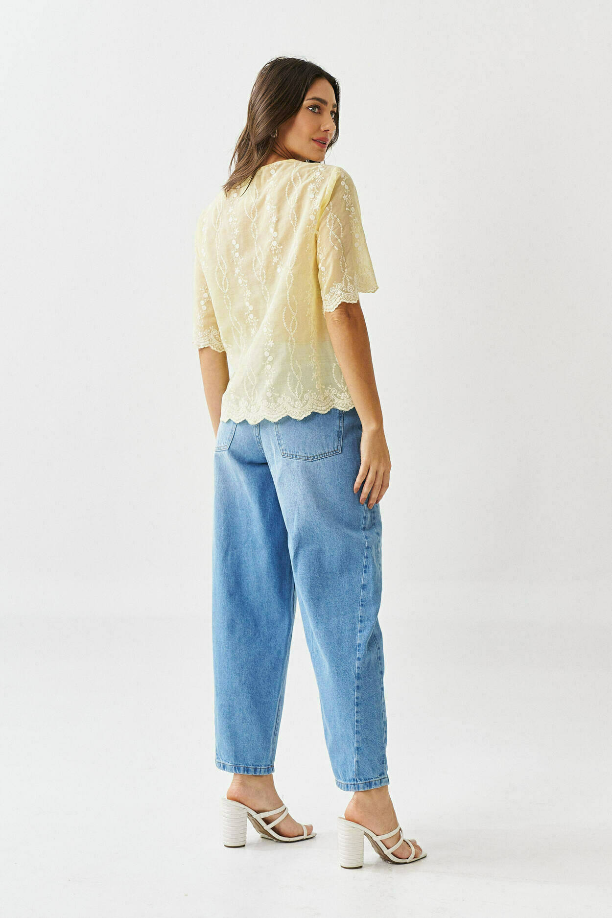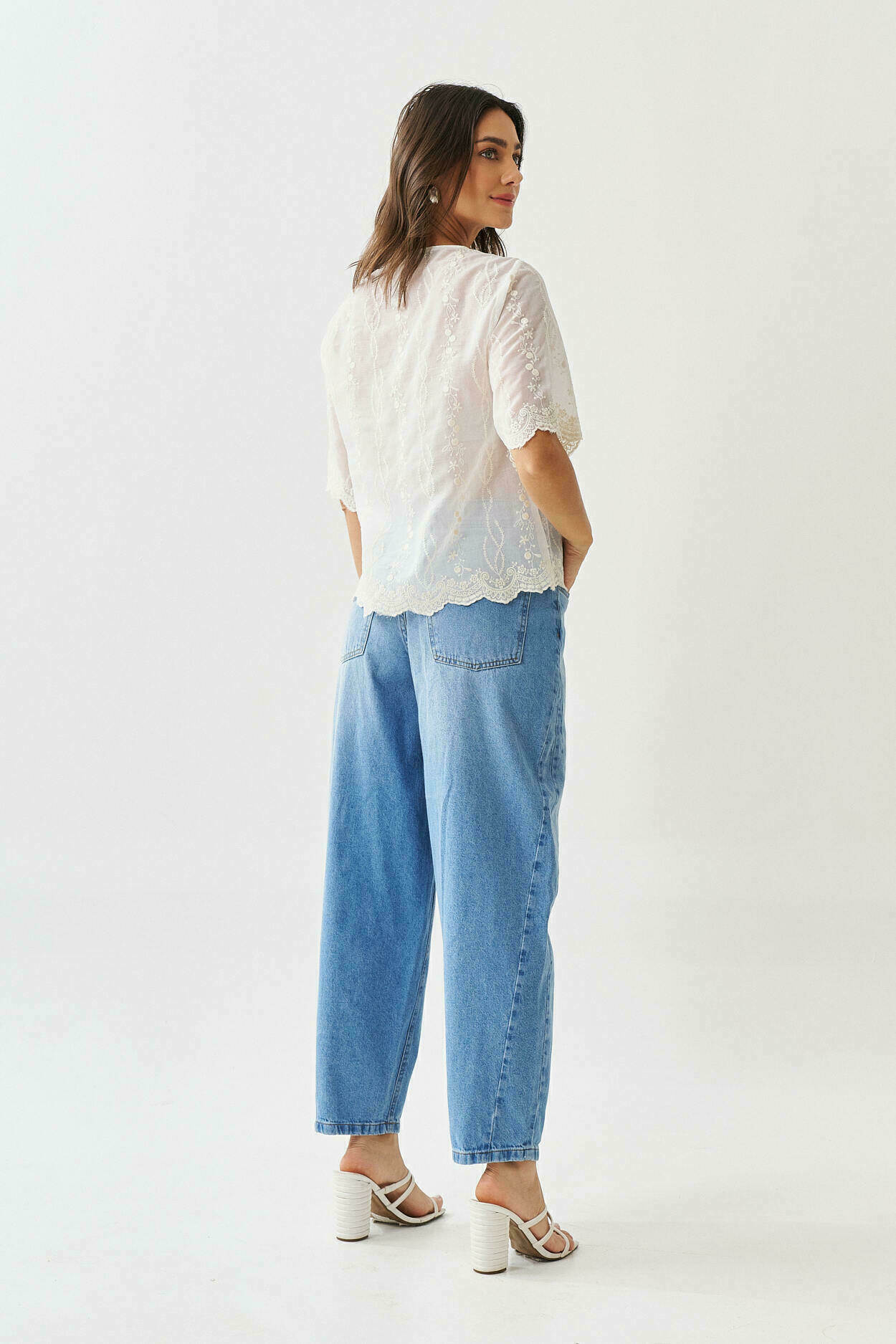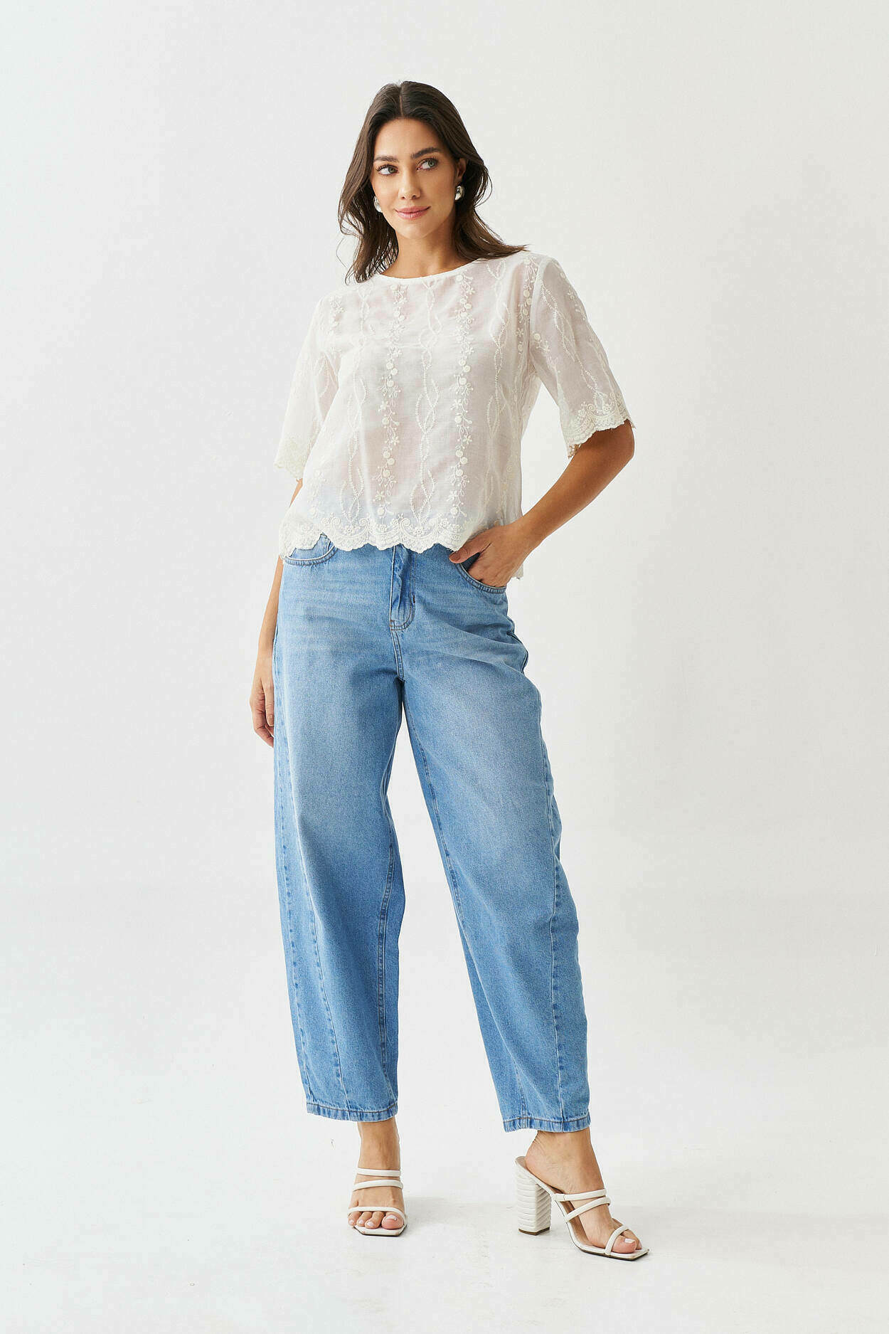 Blusa bordado no barrado com manga curta.