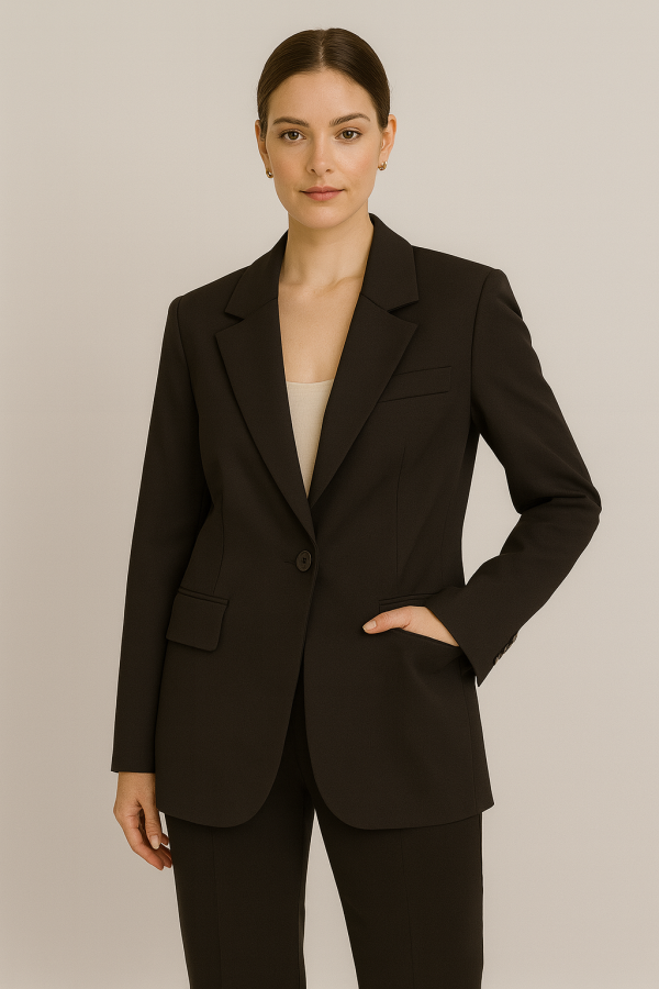 Um blazer icônico, prático e sofisticado, essencial no guarda-roupa para criar composições modernas e refinadas.
