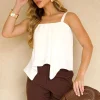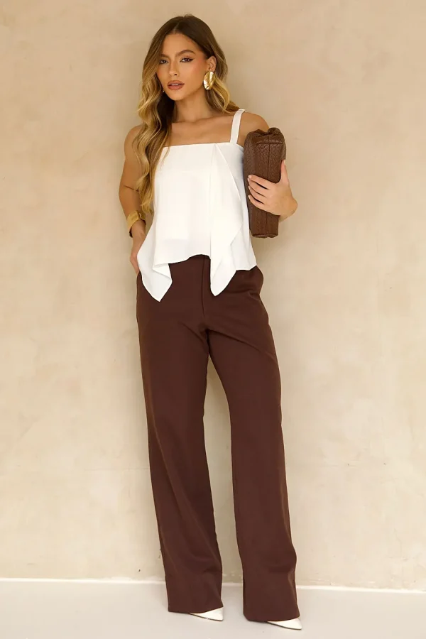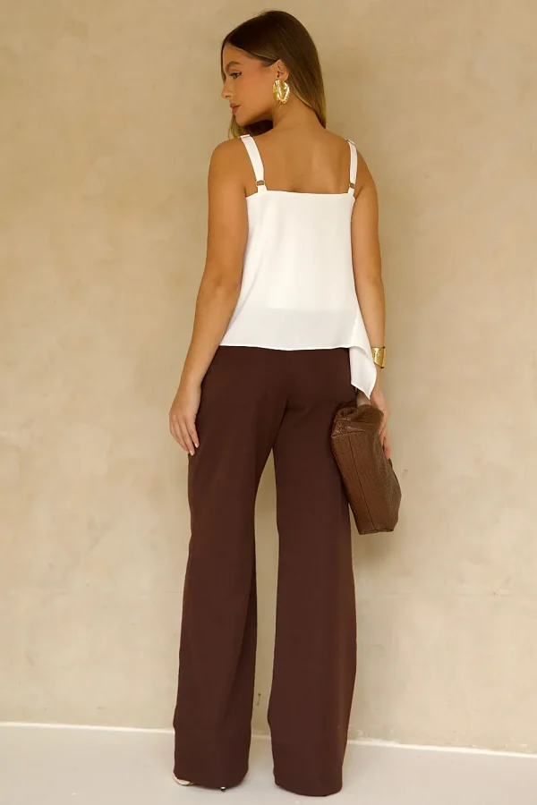 Singapura – Tecido leve com caimento fluido – Blusa de alças com reguladores, confeccionada em tecido leve e fluido. O design apresenta camadas assimétricas com movimento, que criam um visual moderno e sofisticado.