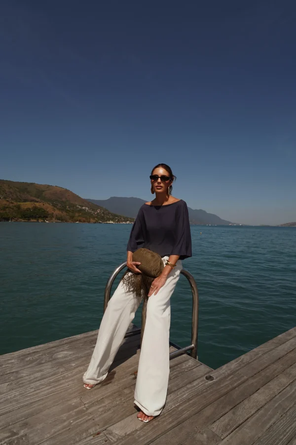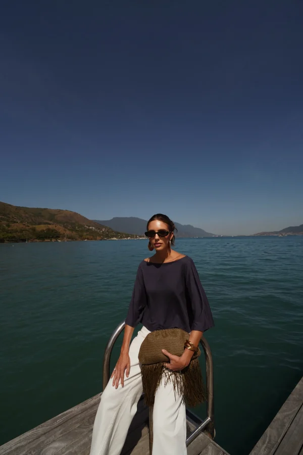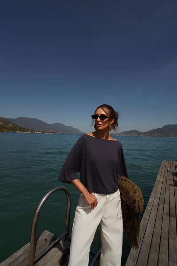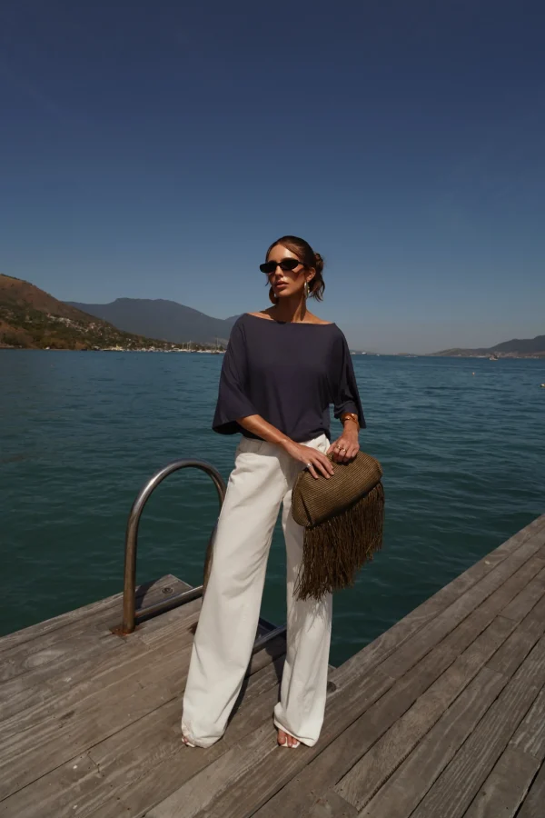 A modelagem ampla, com mangas 3/4 soltinhas e decote canoa, traz modernidade e um ar leve, perfeito para dias de sol, encontros casuais ou momentos de puro conforto com estilo.