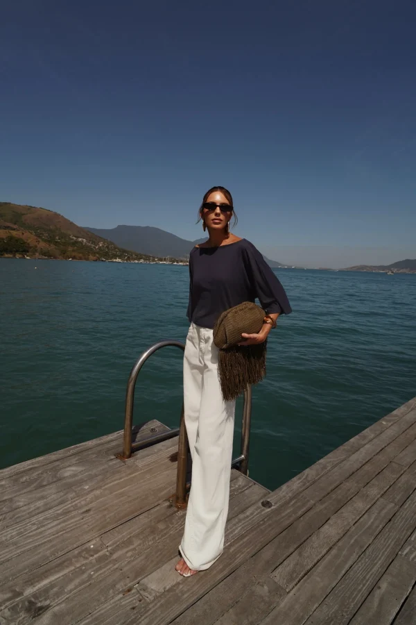 Feita em malha de viscose com linho, ela tem o toque suave, caimento fluido e um acabamento natural que deixa o visual fresco e sofisticado sem esforço 🌿