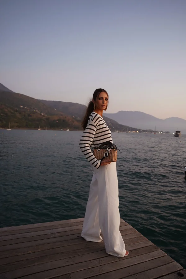 Leve, macia e com elasticidade na medida, ela se ajusta ao corpo valorizando a silhueta de forma delicada.