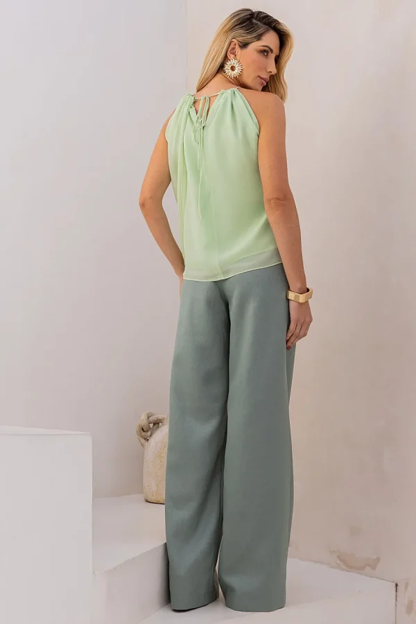 Feita em tecido leve e fluido, garante frescor e conforto nos dias mais quentes, além de ser super versátil para composições que vão do casual ao elegante.