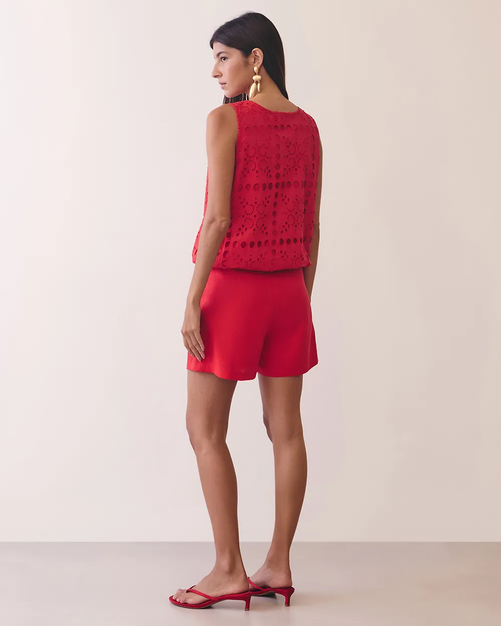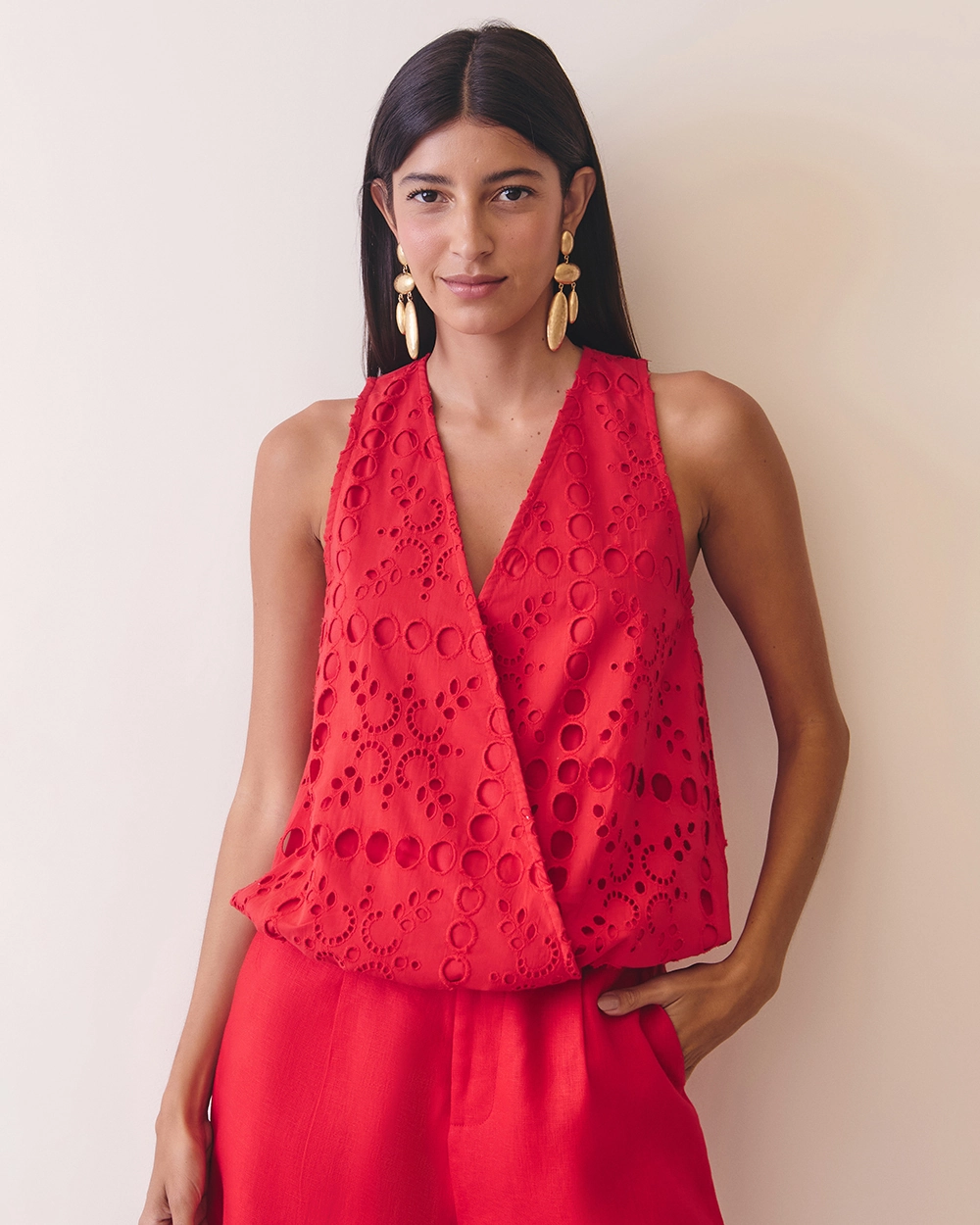 Ficha técnica 🧵: 100% algodão. Modelagem transpassada com decote em “V” e acabamento em laise bordada. Cor: vermelho. Origem: nacional. Cuidados: lavar à mão com sabão neutro, não torcer, secar à sombra e passar em temperatura média.