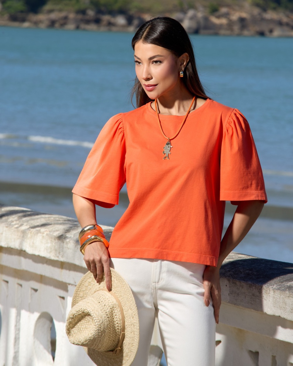 Delicada, elegante e extremamente versátil ✨🤍, a Blusa Marisa é aquela peça essencial que transforma o look com sutileza e feminilidade, perfeita para mulheres que buscam conforto aliado a um visual bem-cuidado no dia a dia. Confeccionada em algodão 100%, ela oferece toque macio, respirabilidade e um vestir leve, ideal para acompanhar a rotina com praticidade e bem-estar. O grande charme da peça está no detalhe de franzido nas mangas, que adiciona volume na medida certa e traz um ar romântico e sofisticado ao visual, elevando a blusa básica a um nível mais refinado 🌿. A modelagem confortável veste com naturalidade, valorizando a silhueta sem marcar, tornando essa blusa feminina de algodão perfeita para composições casuais elegantes, ambientes de trabalho informais ou produções do dia a dia. Como dica de estilo 💡, use a Blusa Marisa com jeans de cintura alta e sandália para um look casual chic, ou combine com saia midi e acessórios delicados para uma proposta mais feminina e sofisticada.