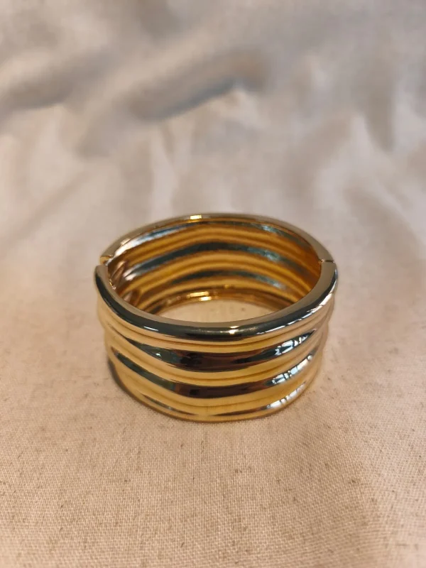 O Bracelete dourado largo é imponente e sofisticado ✨