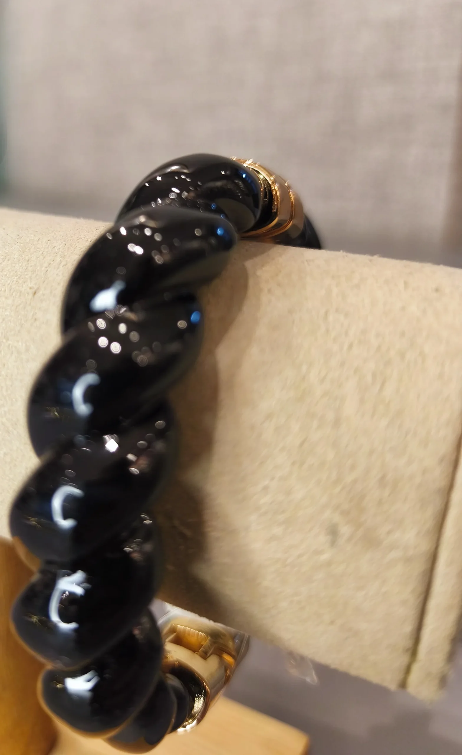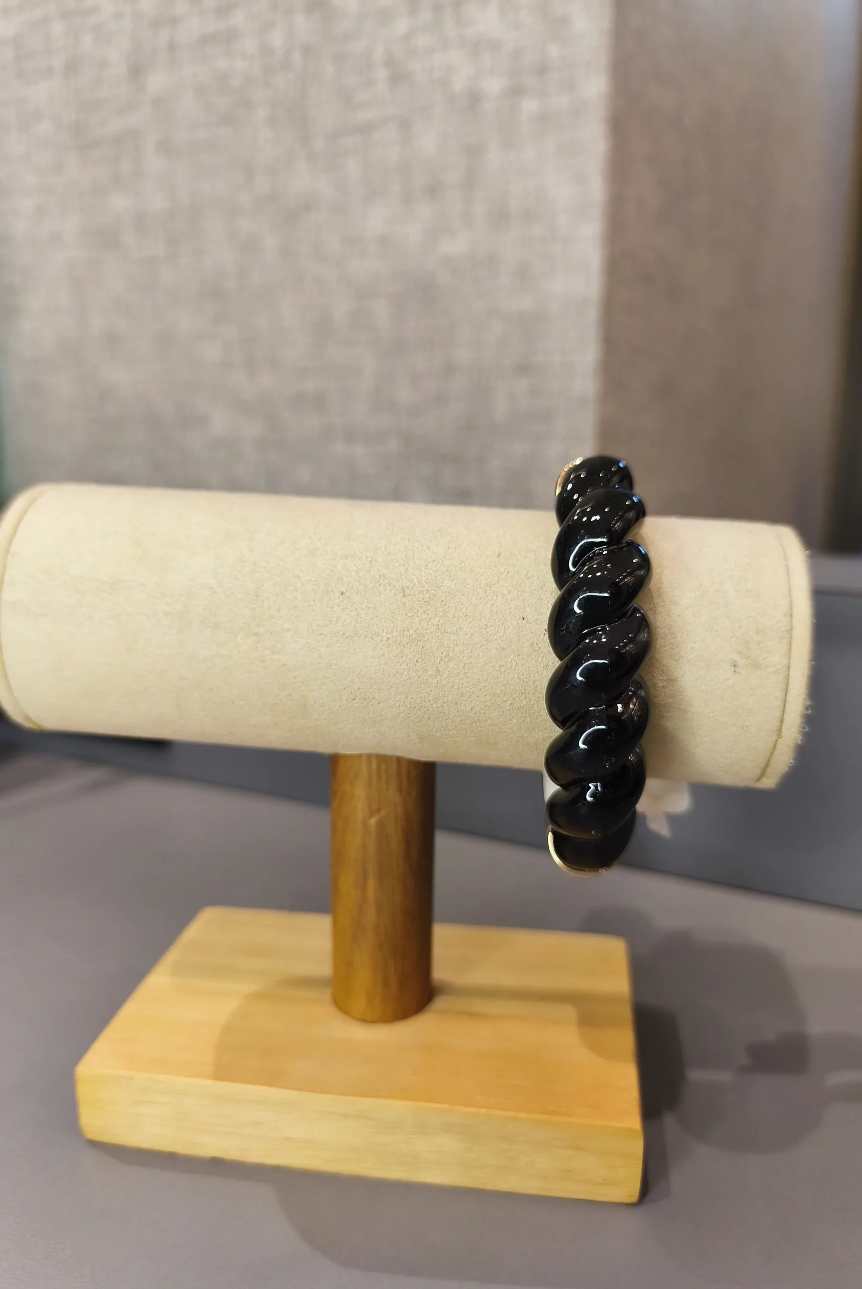 Este bracelete dourado com torção 💙✨ é uma peça moderna e elegante, perfeita para quem aprecia acessórios com personalidade e sofisticação. O design trançado em resina azul escura traz profundidade e brilho, enquanto os detalhes dourados 🌟 conferem um toque luxuoso e contemporâneo. A textura em espiral cria movimento e reflete a luz de forma delicada, tornando o bracelete versátil o suficiente para compor desde produções casuais até looks mais refinados. Leve e confortável, é aquele tipo de acessório que completa o visual com elegância natural.