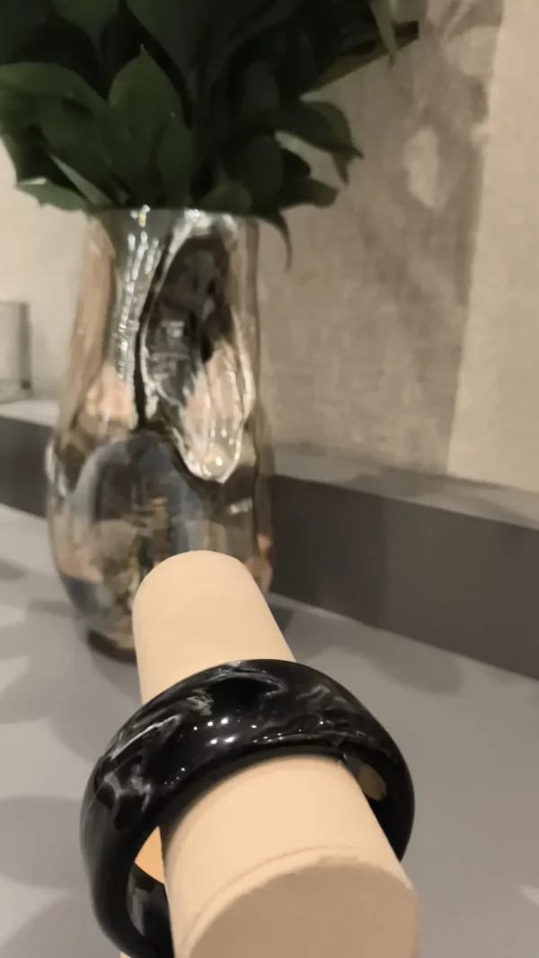 Bracelete largo em resina marmorizada preta com nuances claras, trazendo um efeito visual moderno e sofisticado ✨. Ideal para composições elegantes ou para dar destaque em looks minimalistas 🧥💎.Bracelete largo em resina marmorizada preta com nuances claras, trazendo um efeito visual moderno e sofisticado ✨. Ideal para composições elegantes ou para dar destaque em looks minimalistas 🧥💎.