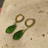 Palavras-chave: brinco dourado, brinco argola, brinco com pedra verde, brinco sofisticado, brinco elegante, brinco feminino, acessório moderno.