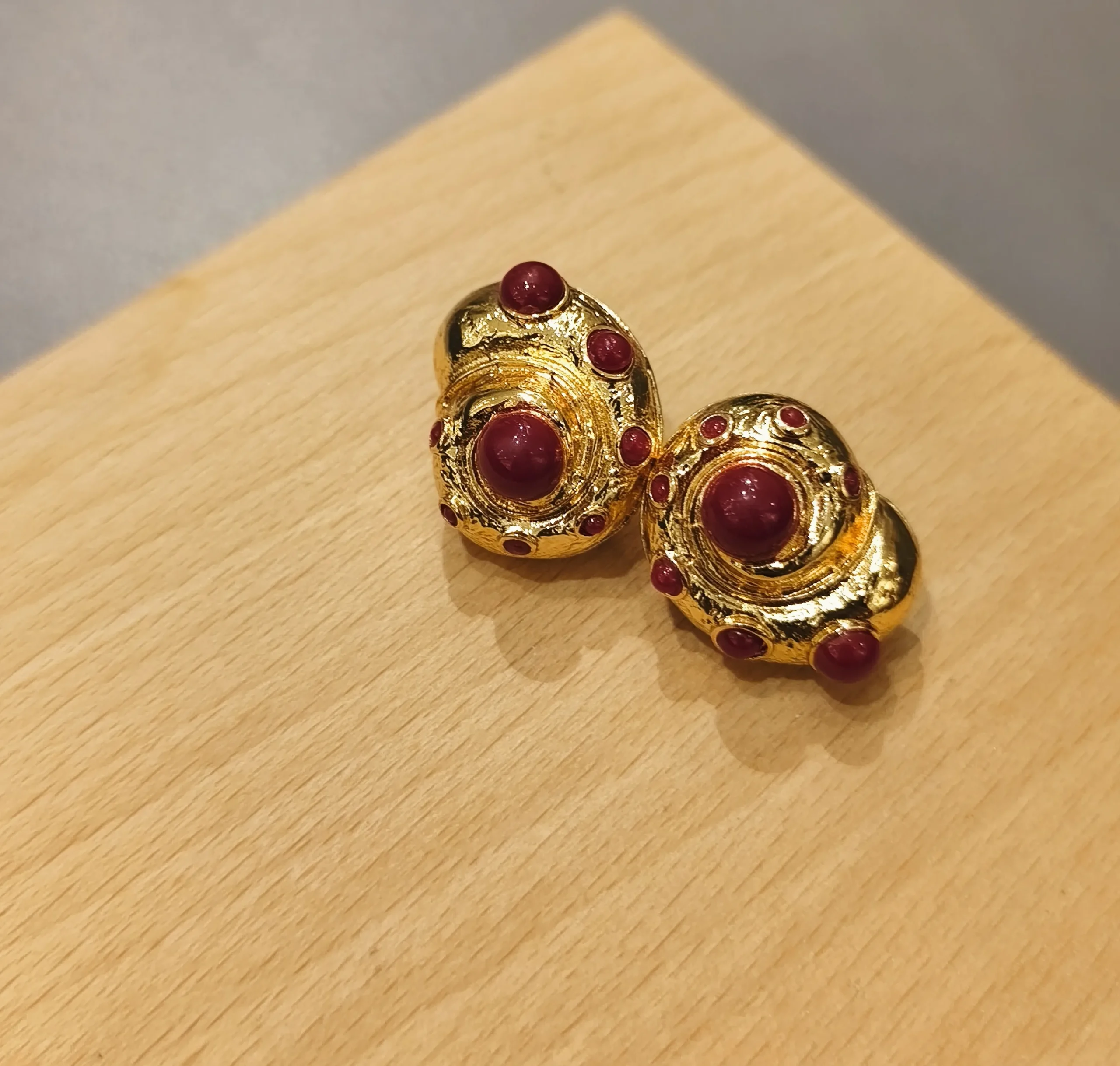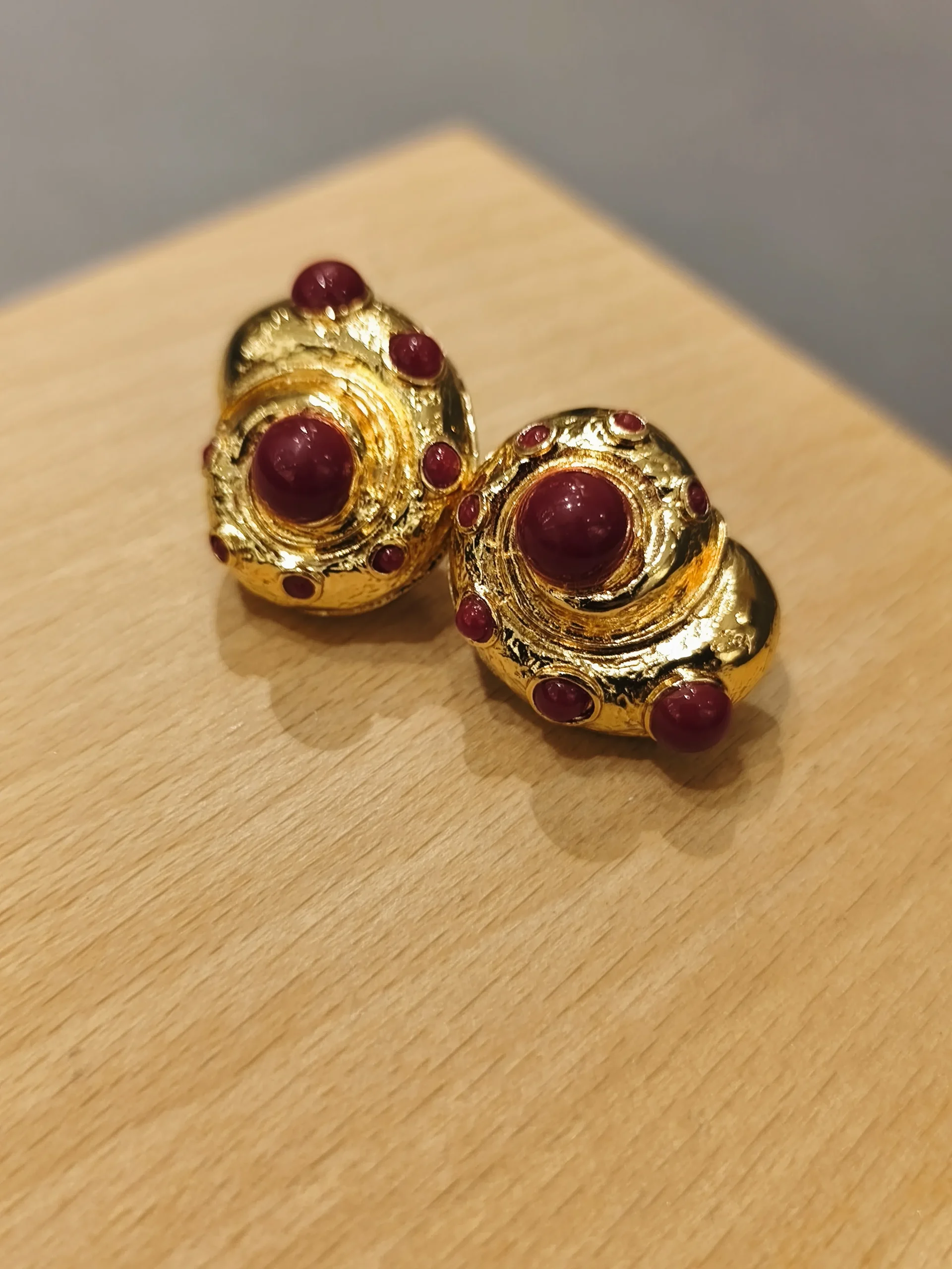 Estes brincos dourados em formato de caracol 🐚✨ são a união perfeita entre elegância e arte. Com design orgânico e volumoso, eles trazem um ar sofisticado e autoral, como pequenas esculturas douradas que iluminam o rosto. As esferas em vermelho profundo 🍷 adicionam um toque de cor vibrante e feminina, contrastando lindamente com o brilho quente do metal. São peças que traduzem força, sofisticação e personalidade — ideais para quem gosta de acessórios marcantes e cheios de estilo.