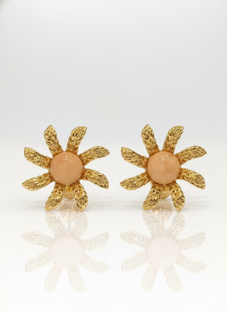 Este brinco dourado em formato de flor é uma verdadeira joia escultural — delicado, luminoso e cheio de personalidade ✨. Suas pétalas alongadas em metal dourado trazem um acabamento texturizado que lembra artesanato fino, capturando a luz de maneira sofisticada e criando um efeito radiante ao redor do rosto. No centro, a esfera em tom pêssego adiciona suavidade e feminilidade, criando um contraste charmosa entre o metal quente e a cor suave. O resultado é um acessório leve, marcante e extremamente elegante — perfeito para mulheres que amam peças que fogem do óbvio, mas ainda assim combinam facilmente com o guarda-roupa do dia a dia. Ele ilumina camisas brancas, vestidos fluidos, tricôs delicados e looks monocromáticos, sempre trazendo um toque artístico e chic 🌼✨.