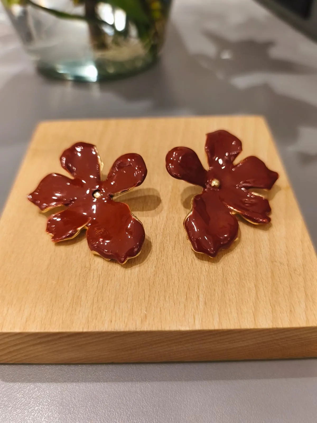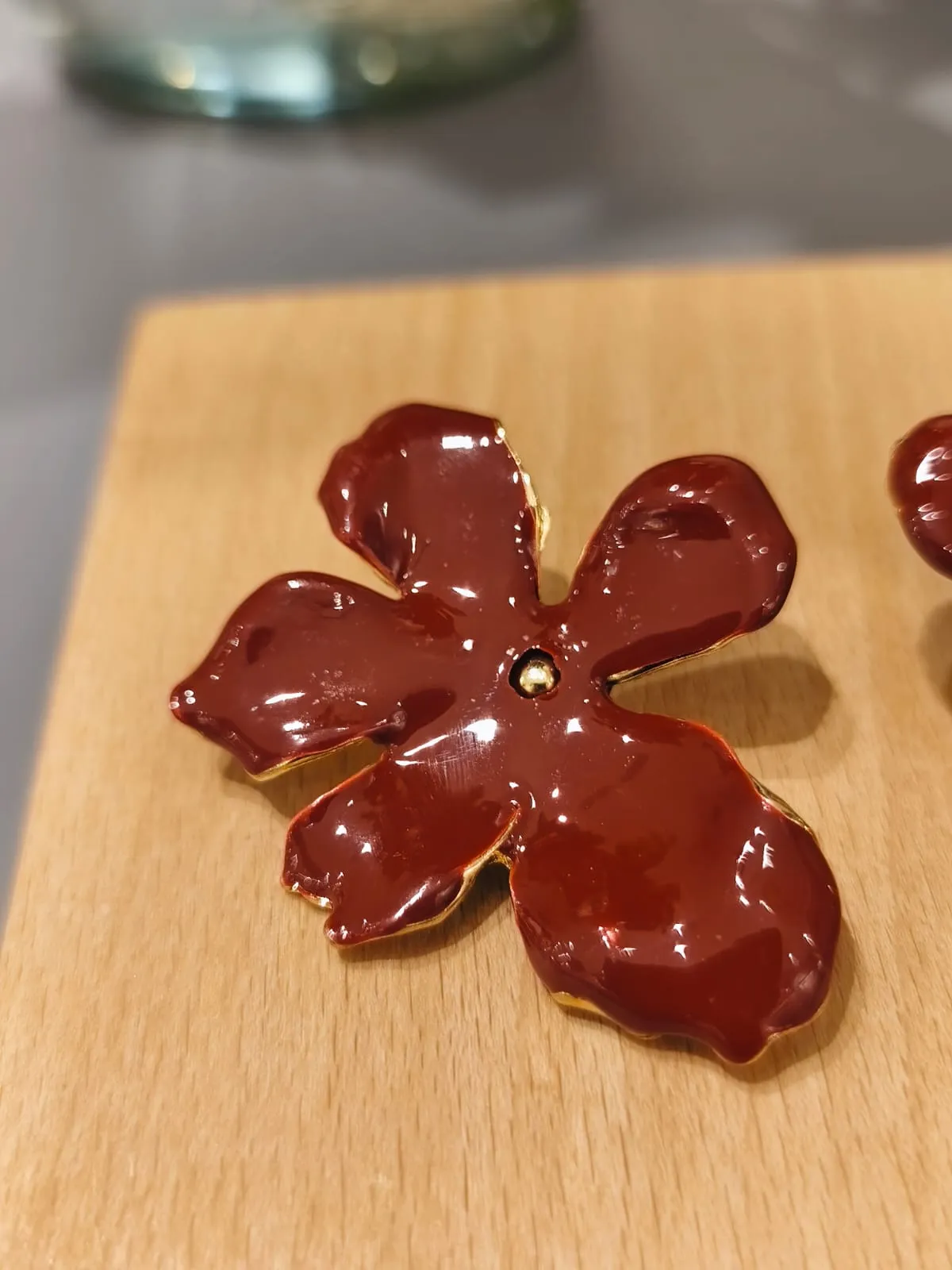 O brinco dourado flor esmaltado é uma peça charmosa e feminina que combina o romantismo das flores com o toque sofisticado do acabamento esmaltado. Cada brinco apresenta uma flor de pétalas amplas em tom terracota com contorno dourado, criando um contraste delicado e elegante. O esmalte com brilho sutil realça a textura orgânica das pétalas, trazendo movimento e naturalidade ao design.