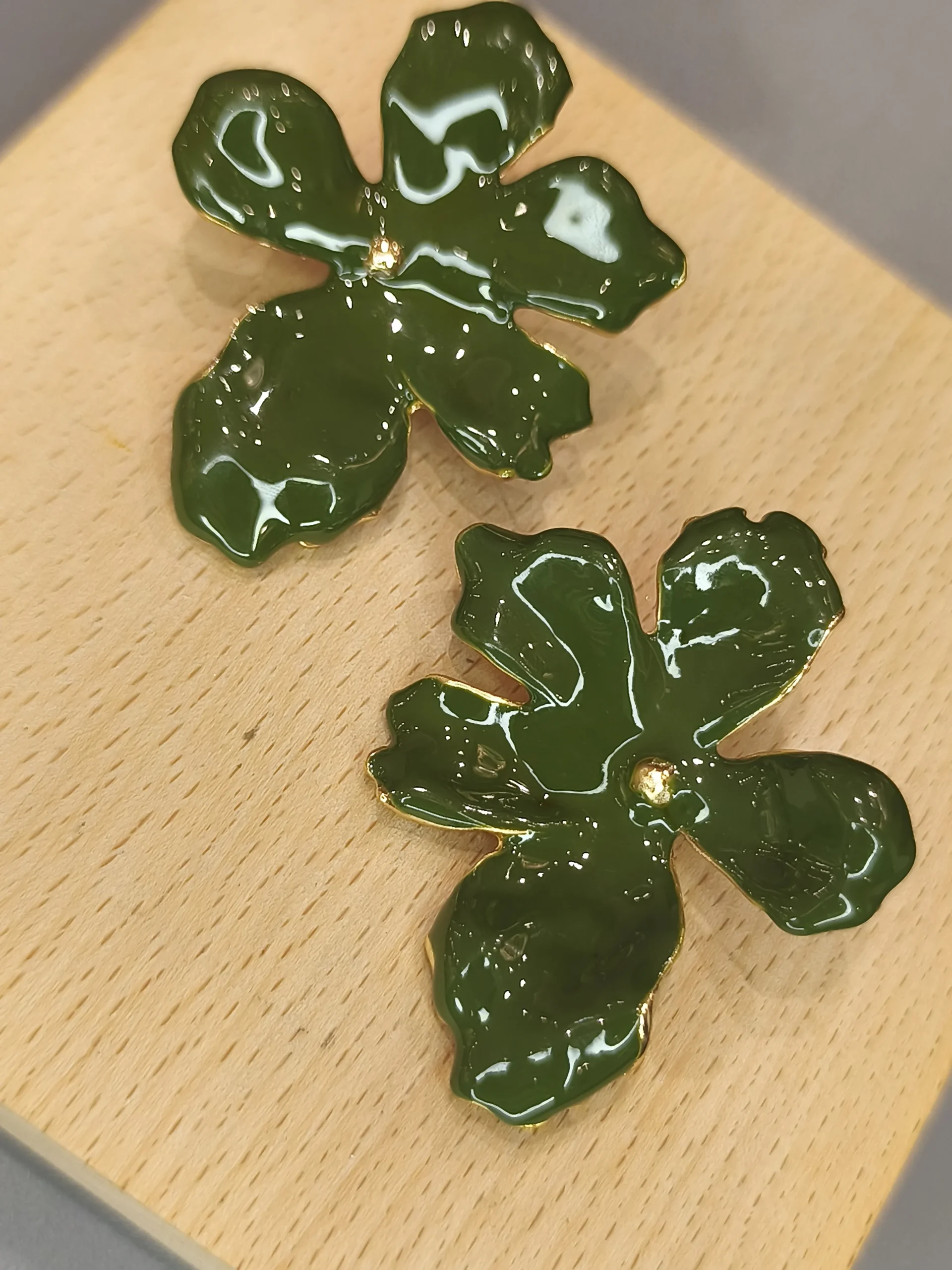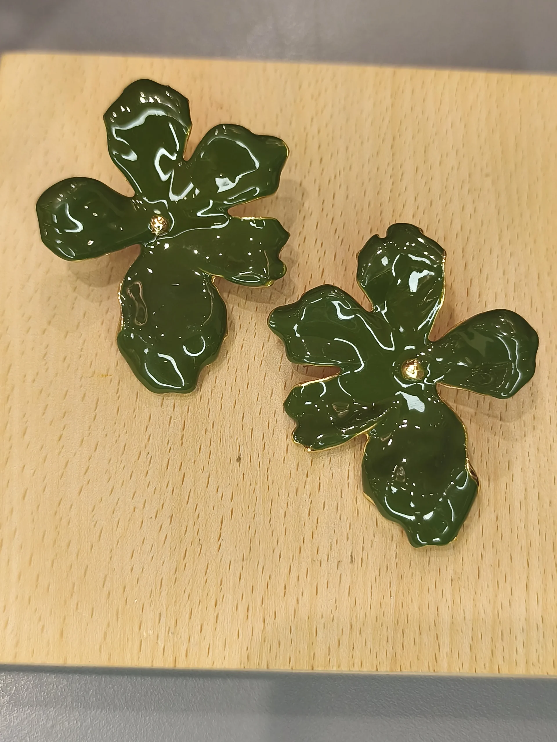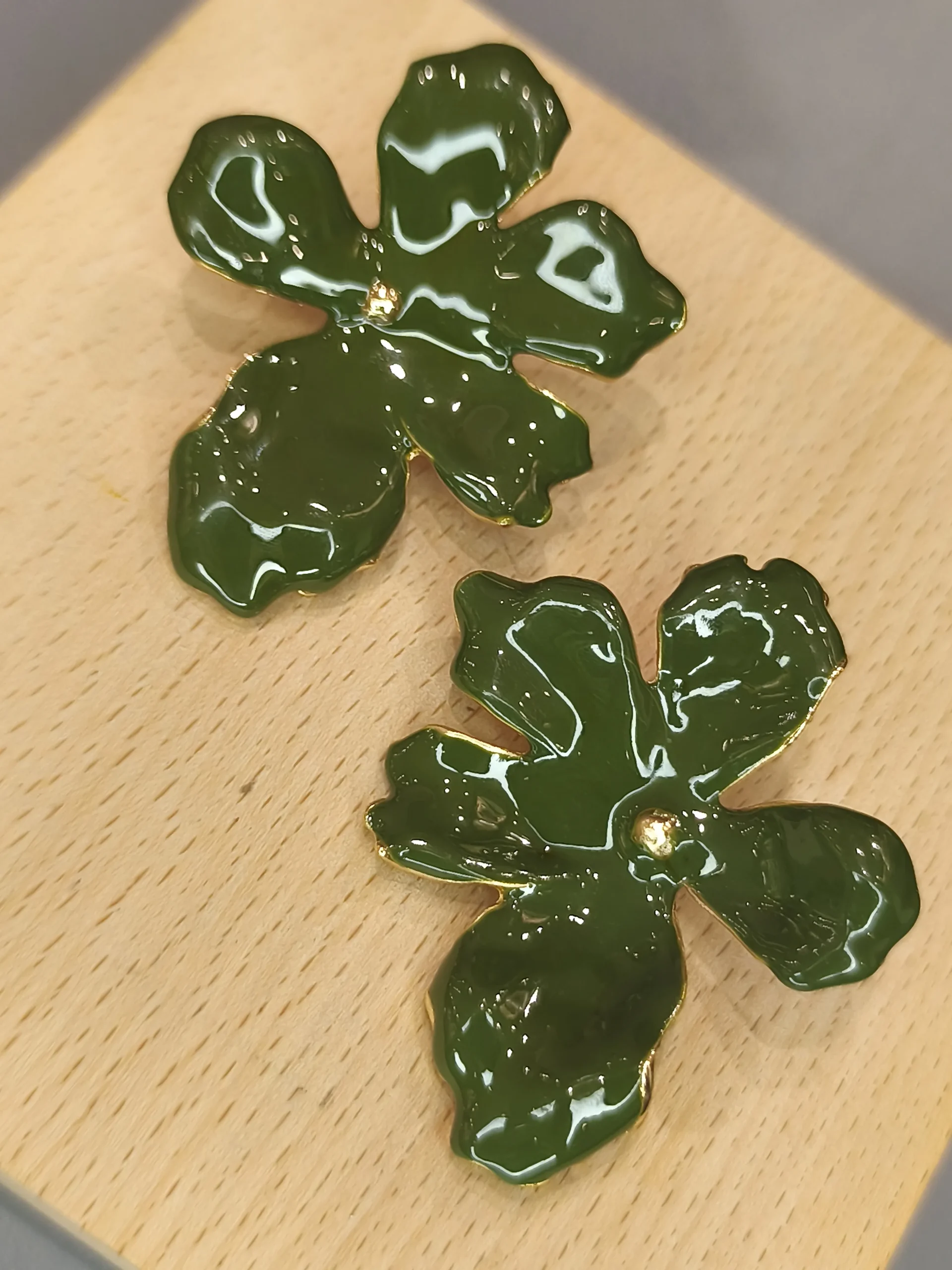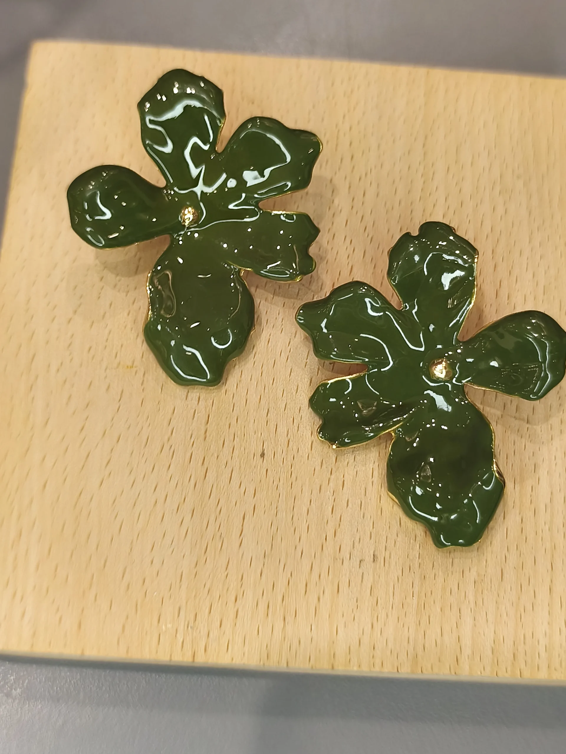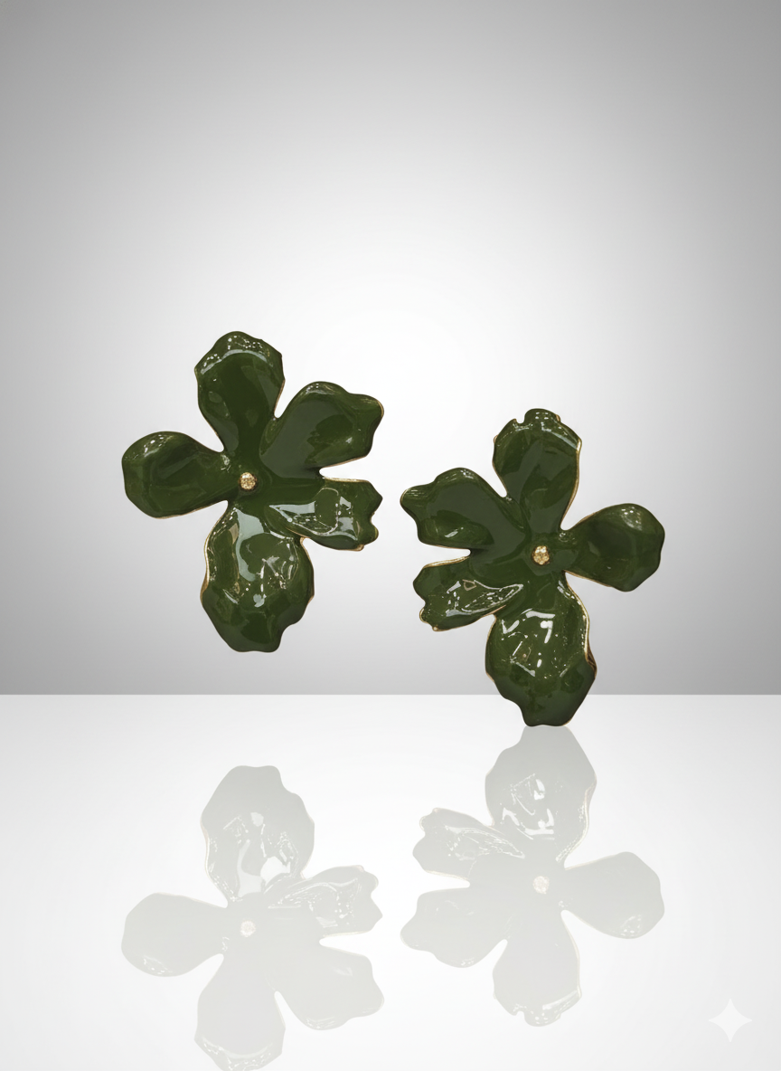 Este brinco dourado em formato de flor é uma peça que une delicadeza artística e presença sofisticada ✨. Suas pétalas assimétricas, em um tom verde profundo com acabamento luminoso, criam um efeito orgânico e contemporâneo, como pequenas esculturas que emolduram o rosto com charme e personalidade. O ponto dourado central adiciona brilho na medida certa, trazendo equilíbrio entre a vivacidade da cor e a elegância do metal. É o tipo de acessório que conversa com mulheres que apreciam detalhes especiais — uma peça feminina, moderna e cheia de estilo, perfeita para transformar desde um look minimalista de trabalho até uma produção mais elaborada.