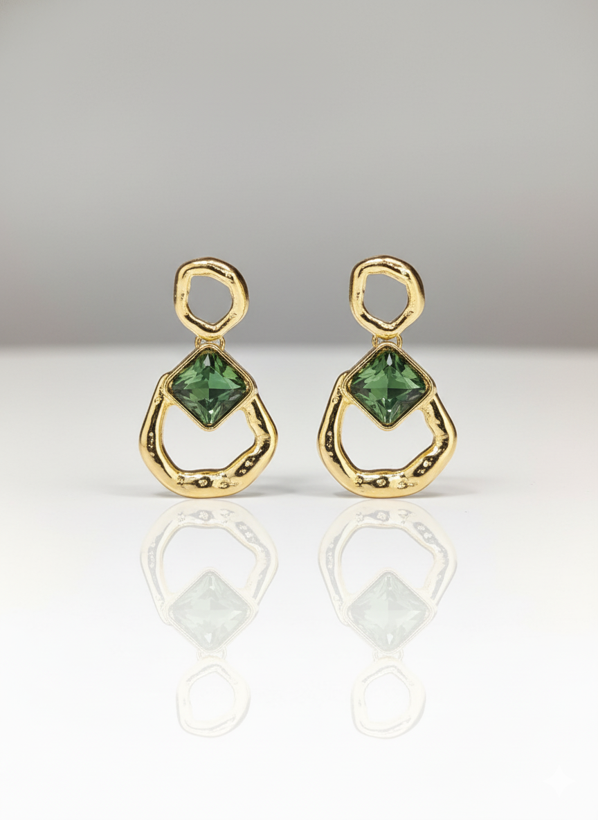 Este brinco dourado com detalhe em losango é uma peça que combina leveza, modernidade e um toque de sofisticação irresistível ✨. Sua estrutura metálica, com linhas orgânicas e delicadamente irregulares, cria um desenho elegante que emoldura o rosto com sutileza. No centro, o losango em verde profundo adiciona um ponto de cor sofisticado, trazendo frescor e personalidade ao acessório. O contraste entre o dourado polido e o verde translúcido resulta em uma peça contemporânea, feminina e extremamente versátil — perfeita para quem busca um toque de estilo mesmo na rotina corrida. É um brinco que ilumina, valoriza e transforma qualquer look com naturalidade.