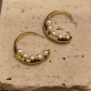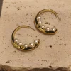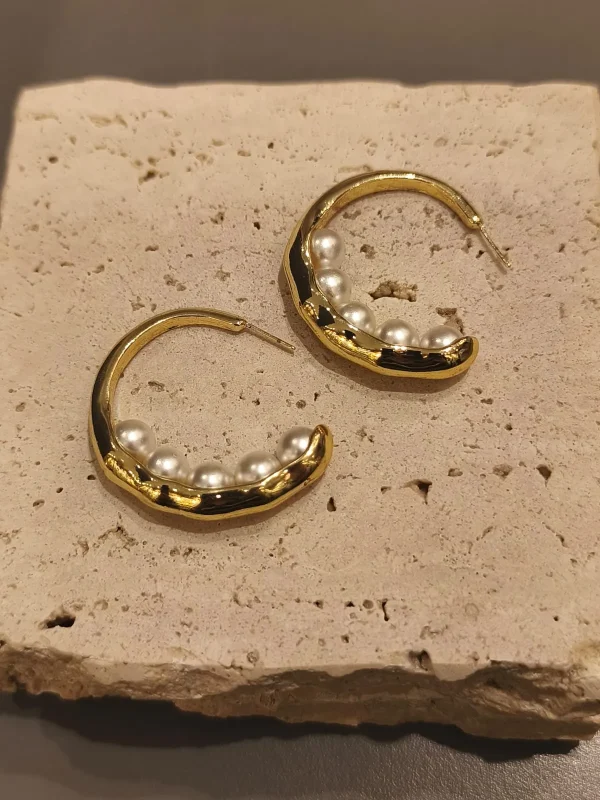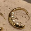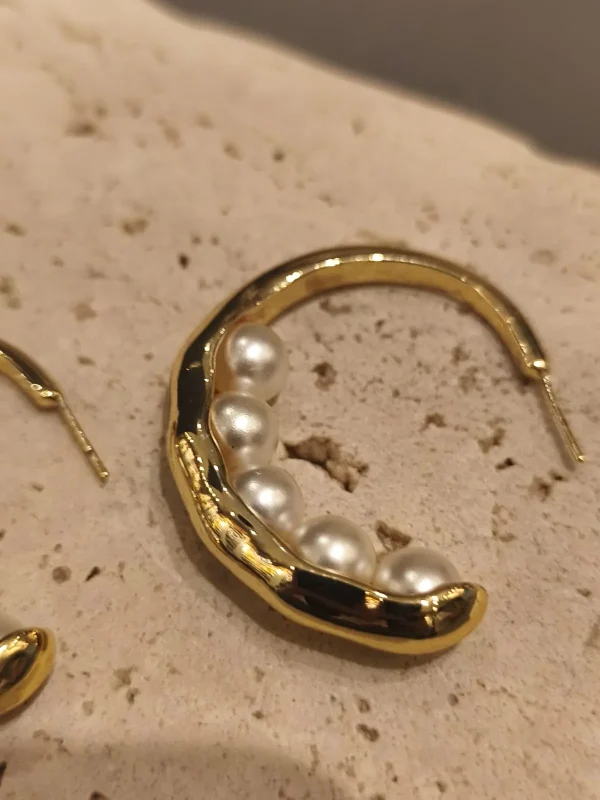 Palavras-chave: brinco dourado, brinco com pérolas, brinco madrepérola, brinco argola moderna, brinco sofisticado, acessório feminino, brinco elegante.