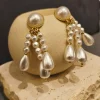 Palavras-chave: brinco dourado, brinco com pérola, brinco pêndulo, brinco sofisticado, brinco elegante, acessório feminino dourado, brinco de festa.