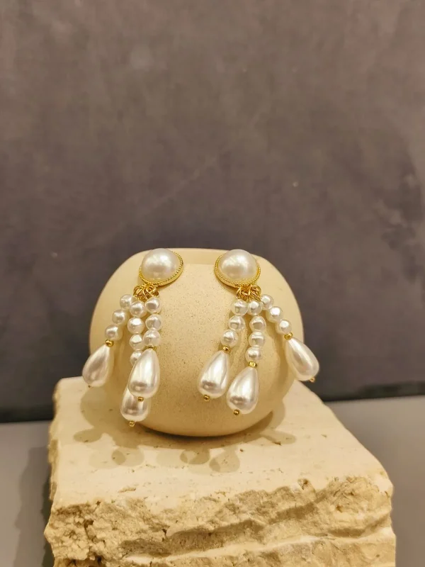 O brinco dourado com pêndulo perolado é a definição de um acessório marcante, delicado e sofisticado ao mesmo tempo. Sua base redonda com pérola central emoldurada pelo dourado transmite elegância clássica, enquanto os fios pendentes de pérolas em diferentes tamanhos, finalizados por gotas alongadas, criam movimento e leveza. O brilho suave das pérolas contrasta com o dourado da estrutura, resultando em uma peça que ilumina o rosto e adiciona feminilidade a qualquer produção. É o tipo de brinco que transforma um look simples em um visual inesquecível.