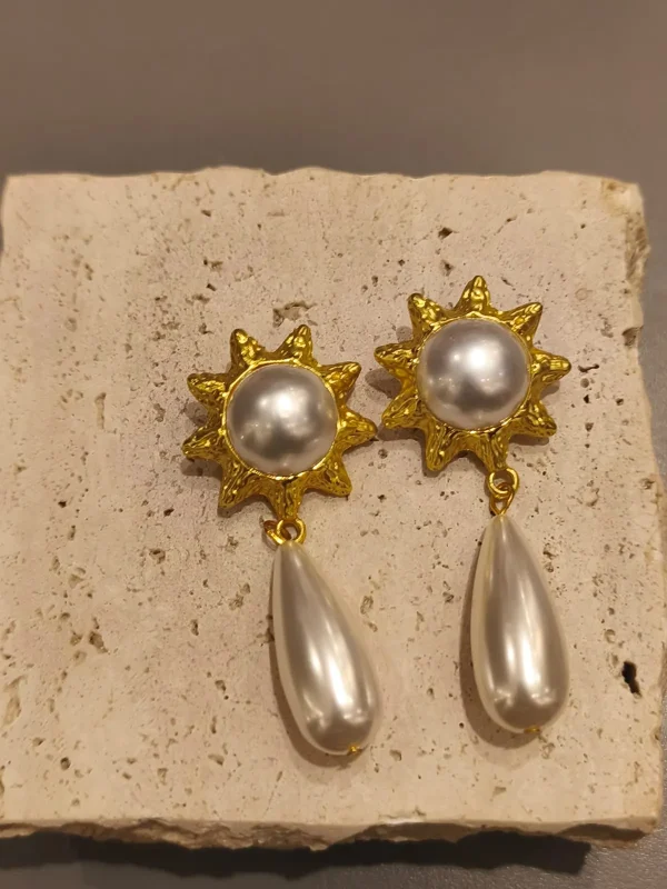 Palavras-chave: brinco dourado, brinco com pérola, brinco pêndulo, brinco sofisticado, brinco elegante, acessório feminino dourado, brinco festa.