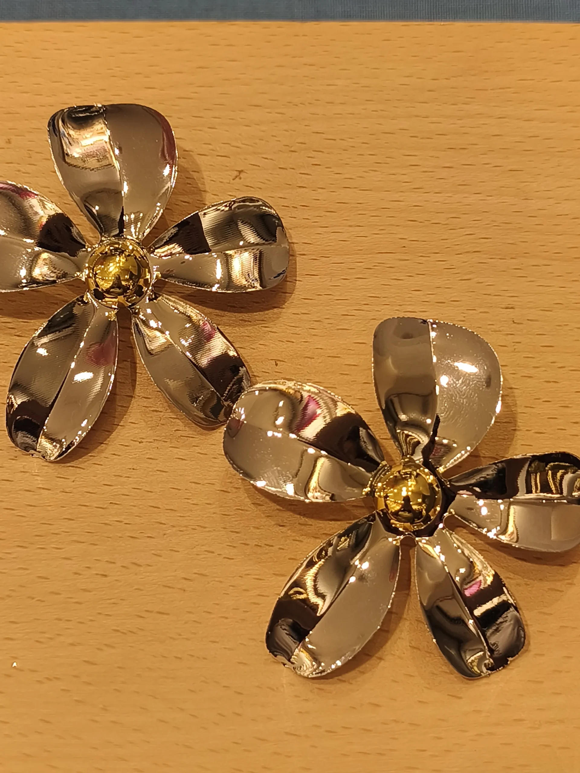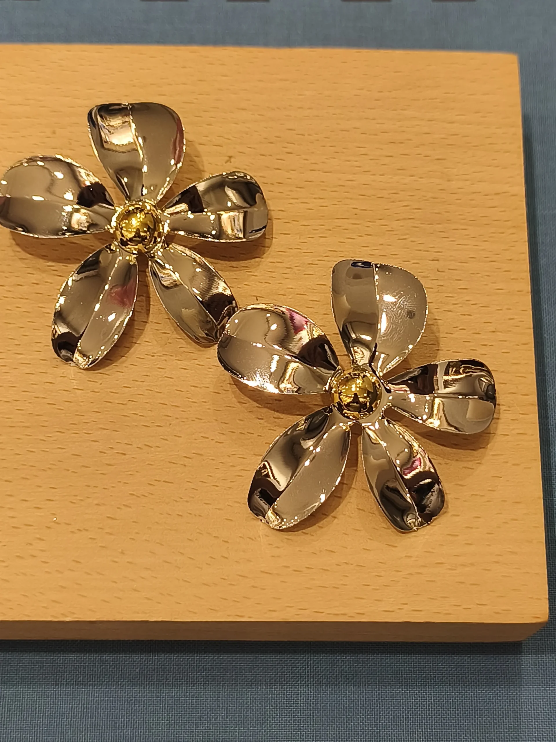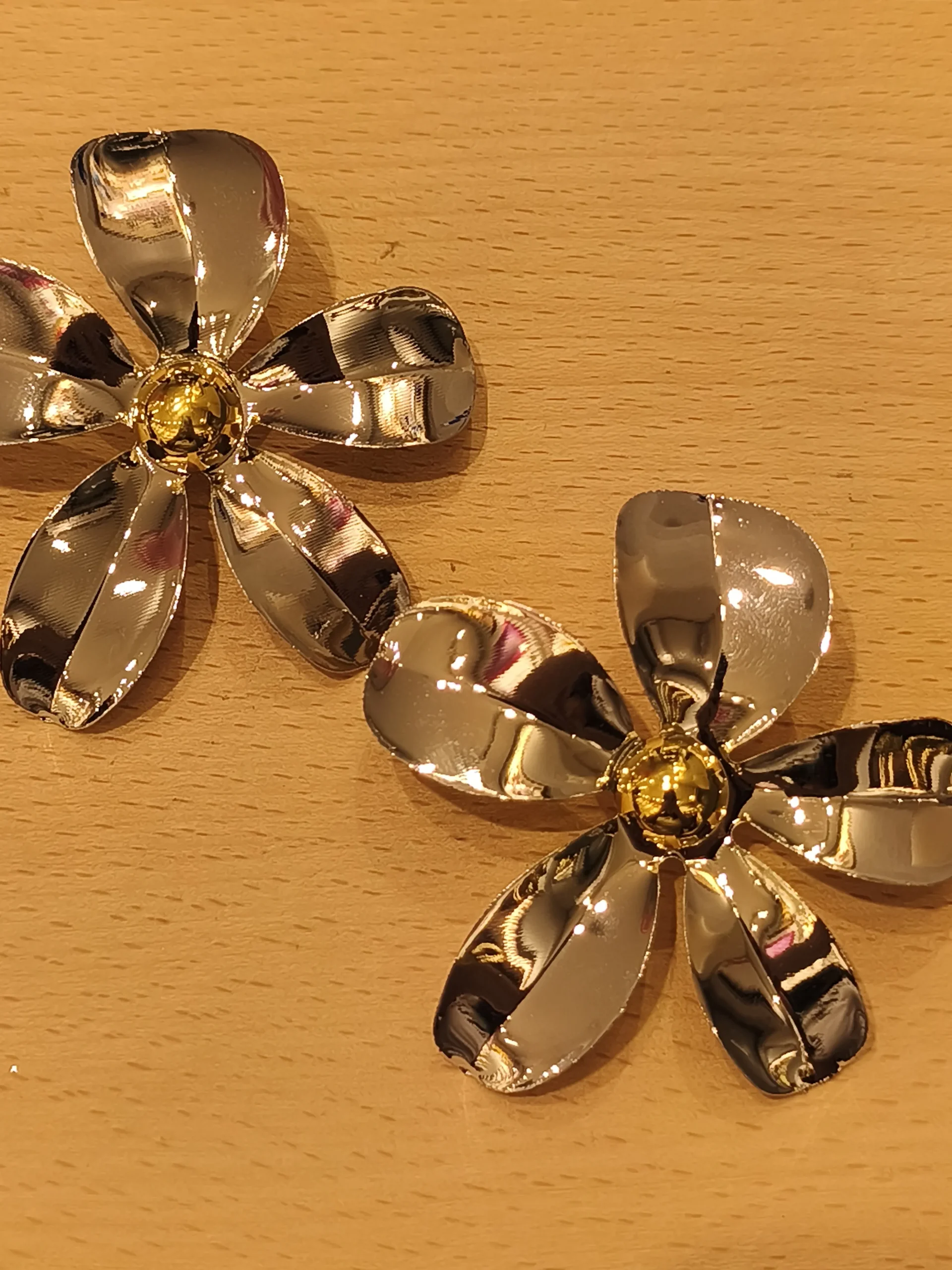 Este brinco flor prateada é uma peça que une romantismo, modernidade e uma dose irresistível de ousadia ✨. Suas pétalas amplas, feitas em metal prateado polido, criam um efeito espelhado que capta e reflete a luz de maneira sofisticada, trazendo movimento e presença ao rosto. O design floral, longe do óbvio, tem um ar contemporâneo: pétalas irregulares, volumosas e cheias de brilho, como uma escultura leve e feminina. No centro, um pequeno detalhe dourado acrescenta contraste e charme, equilibrando o visual com um toque quente e luxuoso. É aquele brinco que transforma o look instantaneamente — perfeito para mulheres que gostam de acessórios marcantes, elegantes e cheios de personalidade 🌸✨. Funciona lindamente com cabelos presos, golas mais altas, vestidos minimalistas ou até mesmo com camisas estruturadas, sempre trazendo um toque artístico e sofisticado.
