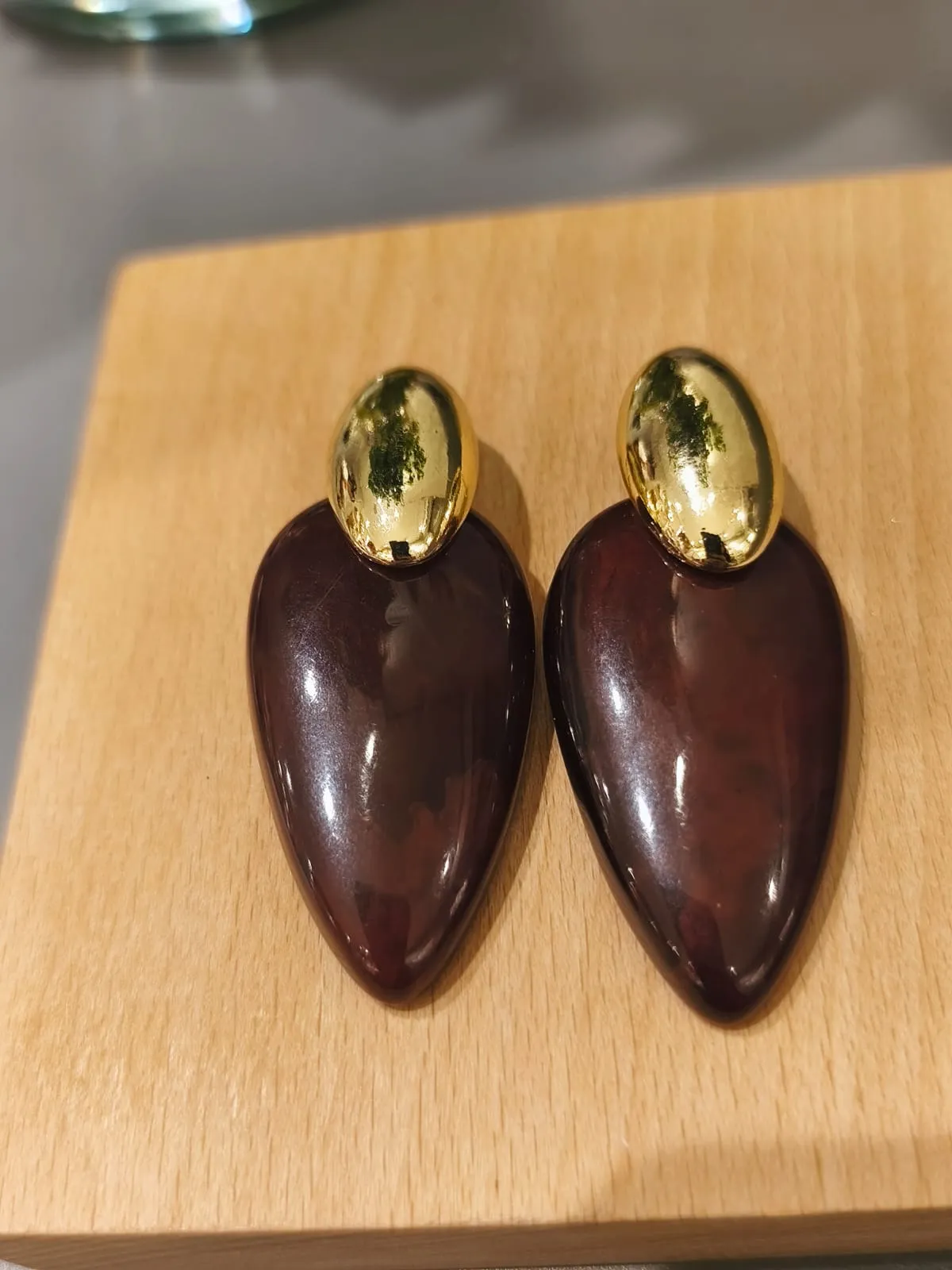 O brinco metal oval dourado com base marrom é uma peça que une elegância e modernidade em um design marcante. A combinação do dourado polido com o tom profundo do marrom cria um contraste sofisticado e quente, perfeito para quem busca um acessório que traga presença sem exagero. Seu formato alongado e levemente orgânico valoriza o rosto e confere um toque de contemporaneidade a qualquer produção. É uma joia versátil, que transita com leveza entre o dia e a noite, adicionando sofisticação e personalidade ao visual.