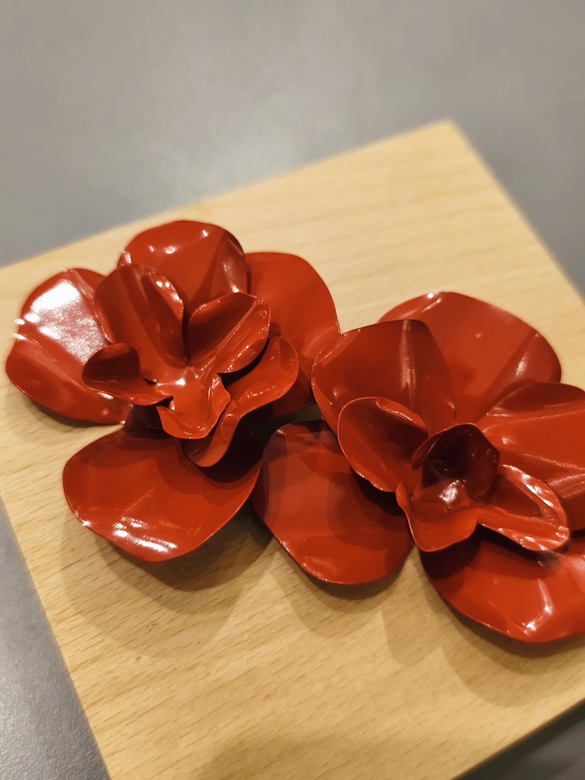 Estes brincos em formato de flor de metal 🌺✨ são pura elegância escultural com um toque ousado e contemporâneo. As pétalas em tom vermelho intenso, com acabamento metálico brilhoso, trazem movimento, feminilidade e uma dose vibrante de sofisticação. Cada detalhe reflete delicadamente a luz, criando um efeito encantador que emoldura o rosto com graça e presença. São perfeitos para mulheres que gostam de acessórios com personalidade, que transformam qualquer look em uma expressão de arte e estilo.