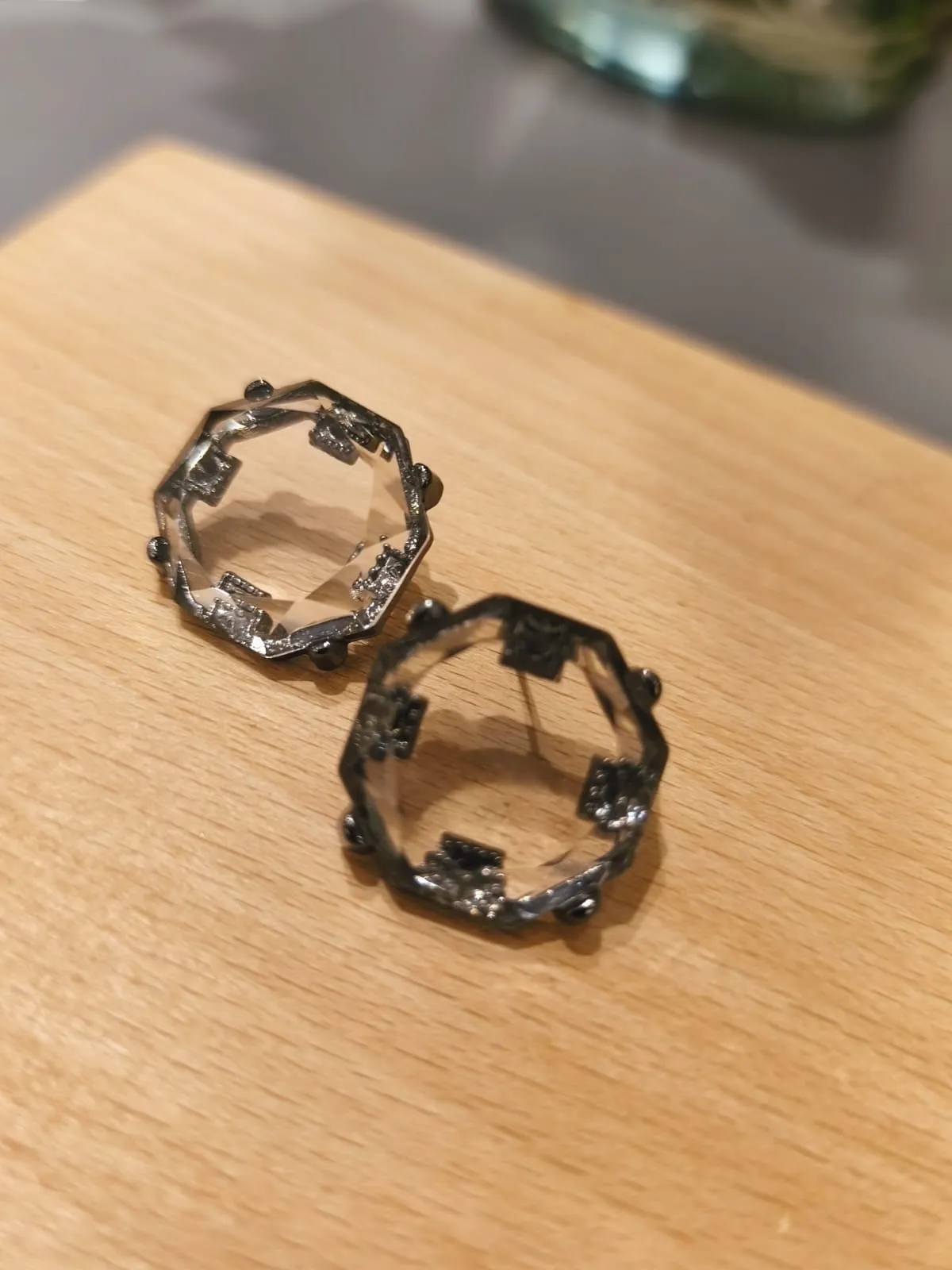 O brinco ônix em formato geométrico é uma joia moderna e sofisticada que une força e delicadeza em uma única criação. Sua estrutura escura em banho ônix contrasta lindamente com a transparência facetada das pedras, que refletem a luz com elegância e criam um efeito quase hipnótico. O design octogonal traz uma estética contemporânea e arquitetônica, perfeita para mulheres que apreciam peças com personalidade, mas que não abrem mão da sutileza. É o tipo de acessório que transforma um look básico em algo especial, elevando instantaneamente o visual com um toque de mistério e poder.
