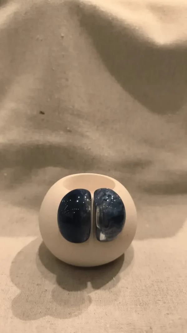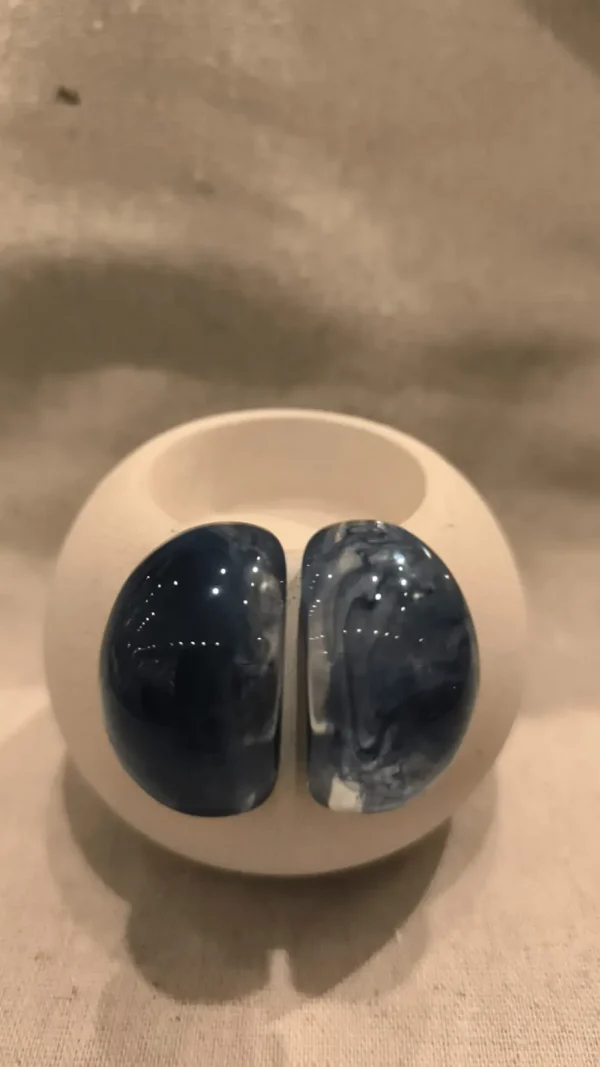 Com formato arredondado e acabamento polido, o Brinco Resina Azul traz um visual contemporâneo com estética natural. 🌊 A mistura de tons profundos de azul e branco marmorizado lembra pedras semipreciosas e evoca sofisticação com leveza.