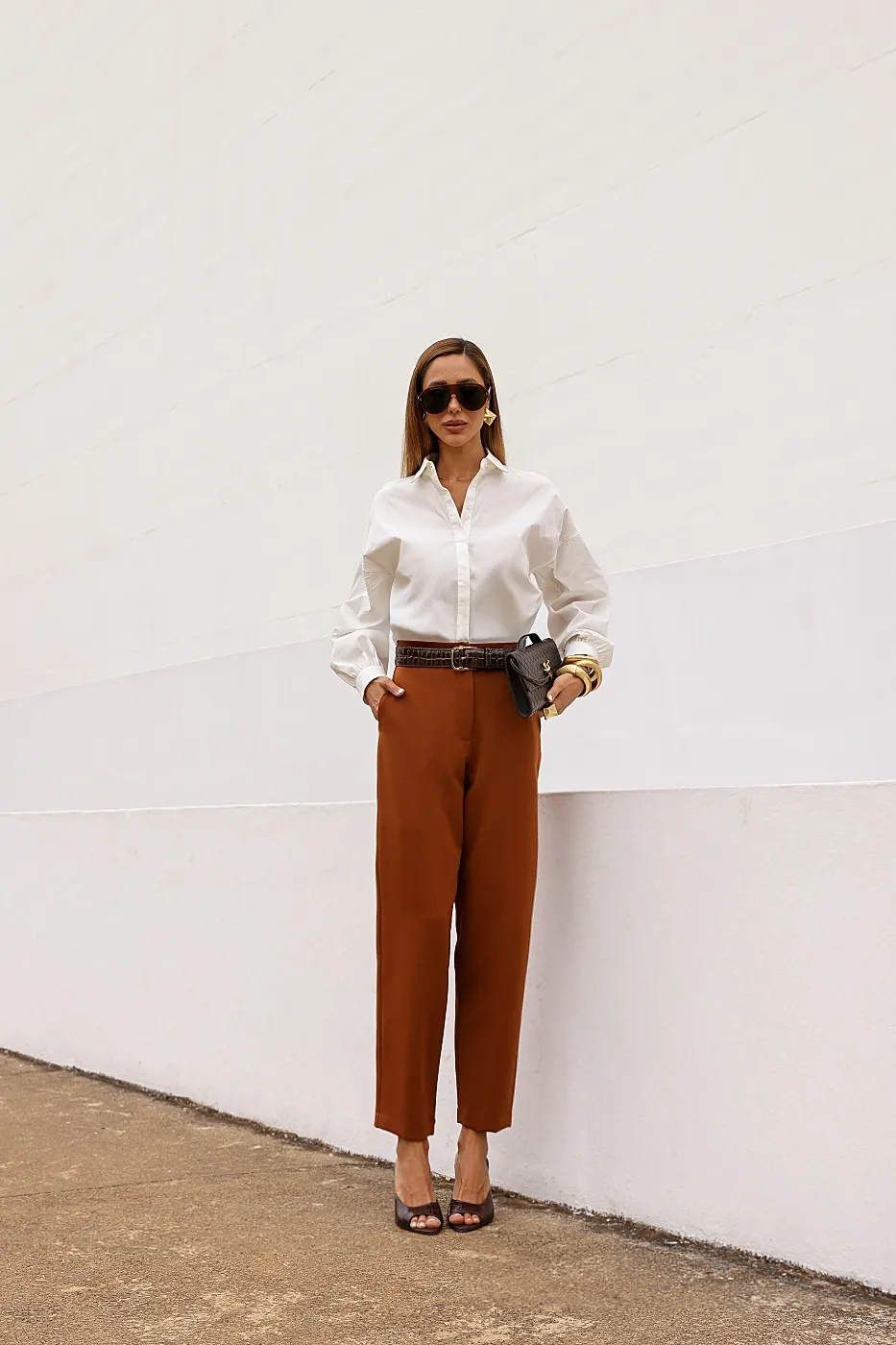 Tags: #calçaalfaiataria #modafeminina #barrelpants #looksofisticado #alfaiatariamoderna #estiloelegante #modabrasileira #calçaterracota #modacontemporanea #chicsemesforço