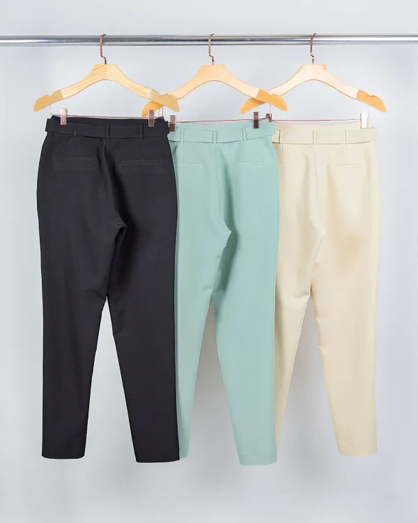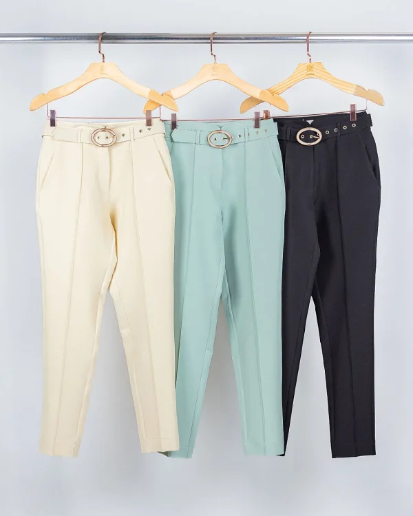 Essa calça é o tipo de peça que eleva qualquer produção. A alfaiataria bem estruturada alonga a silhueta com a nervura frontal, enquanto o cós arredondado traz um detalhe moderno e super elegante. O cinto forrado com fivela resinada completa o look com sofisticação sutil — é aquela calça que vai do trabalho ao jantar sem perder o charme.