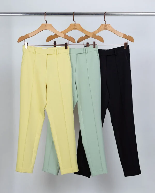 Essa calça é o equilíbrio perfeito entre modernidade e elegância. A alfaiataria impecável garante caimento sofisticado, enquanto o cós transpassado com fechamento por gancho traz um detalhe diferenciado, que foge do comum. As nervuras frontais alongam a silhueta e dão aquele toque de refinamento imediato à produção.