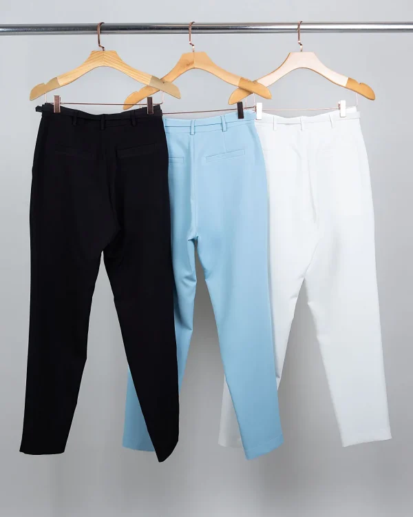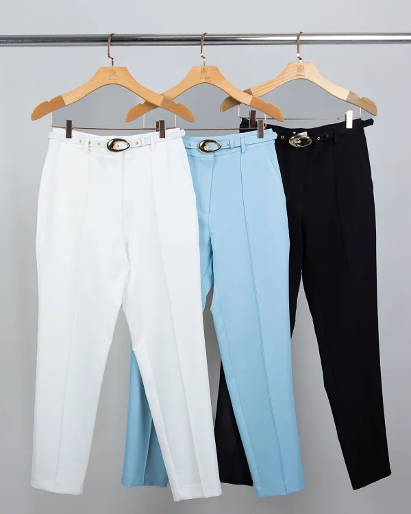 Essa calça é sinônimo de sofisticação sem esforço. O corte de alfaiataria valoriza a silhueta, enquanto a nervura frontal alonga as pernas e garante aquele ar elegante imediato. O cinto forrado com fivela dourada é o detalhe que eleva a peça, transformando um básico em um clássico moderno e atemporal.