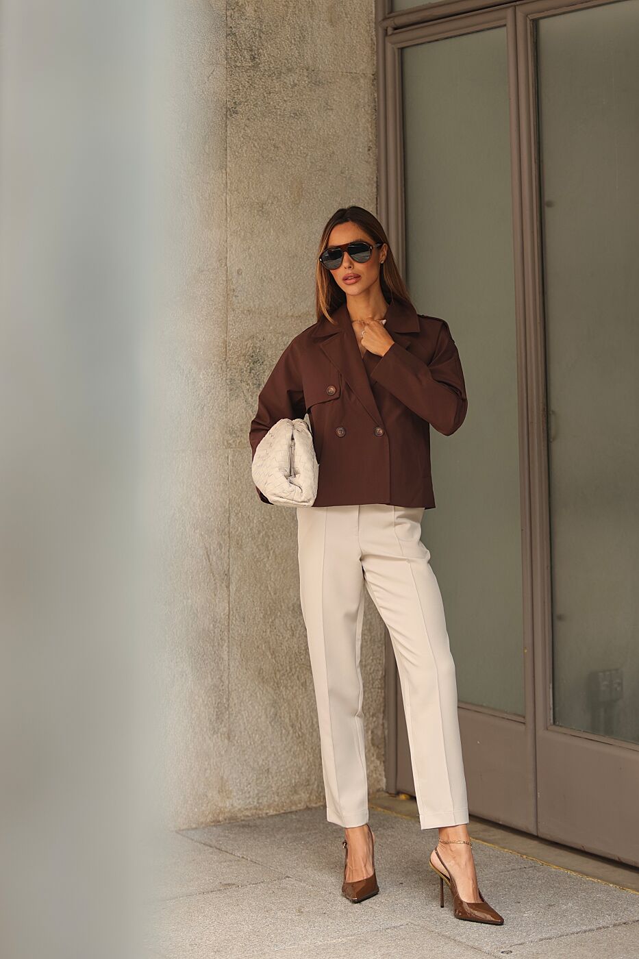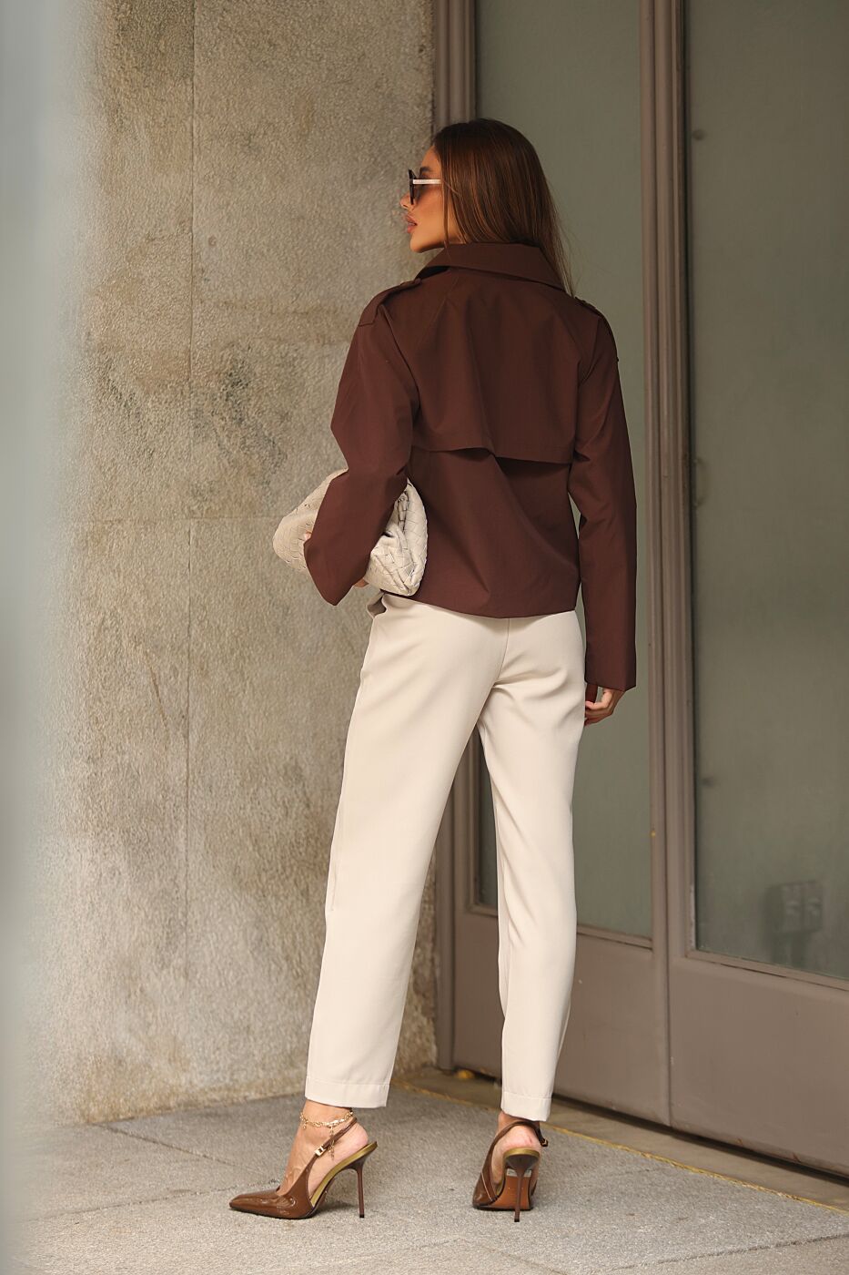 Calça alfaiataria nervura frente, boca justa.
