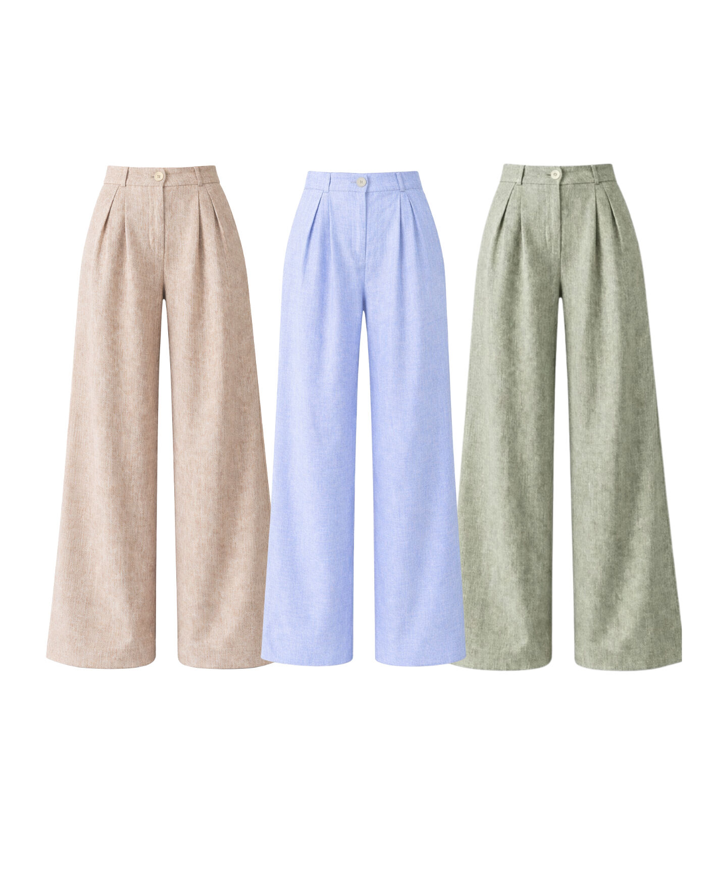 Ficha técnica: calça confeccionada em algodão misto com textura mesclada, composição de 70% poliéster e 30% algodão, sem forro, modelagem pantalona com caimento fluido e sofisticado, cintura média, cor neutra mesclada, peça de origem nacional, com cuidados de lavagem à mão ou em ciclo delicado, secagem à sombra e passagem em temperatura baixa para preservar a textura e o caimento do tecido.