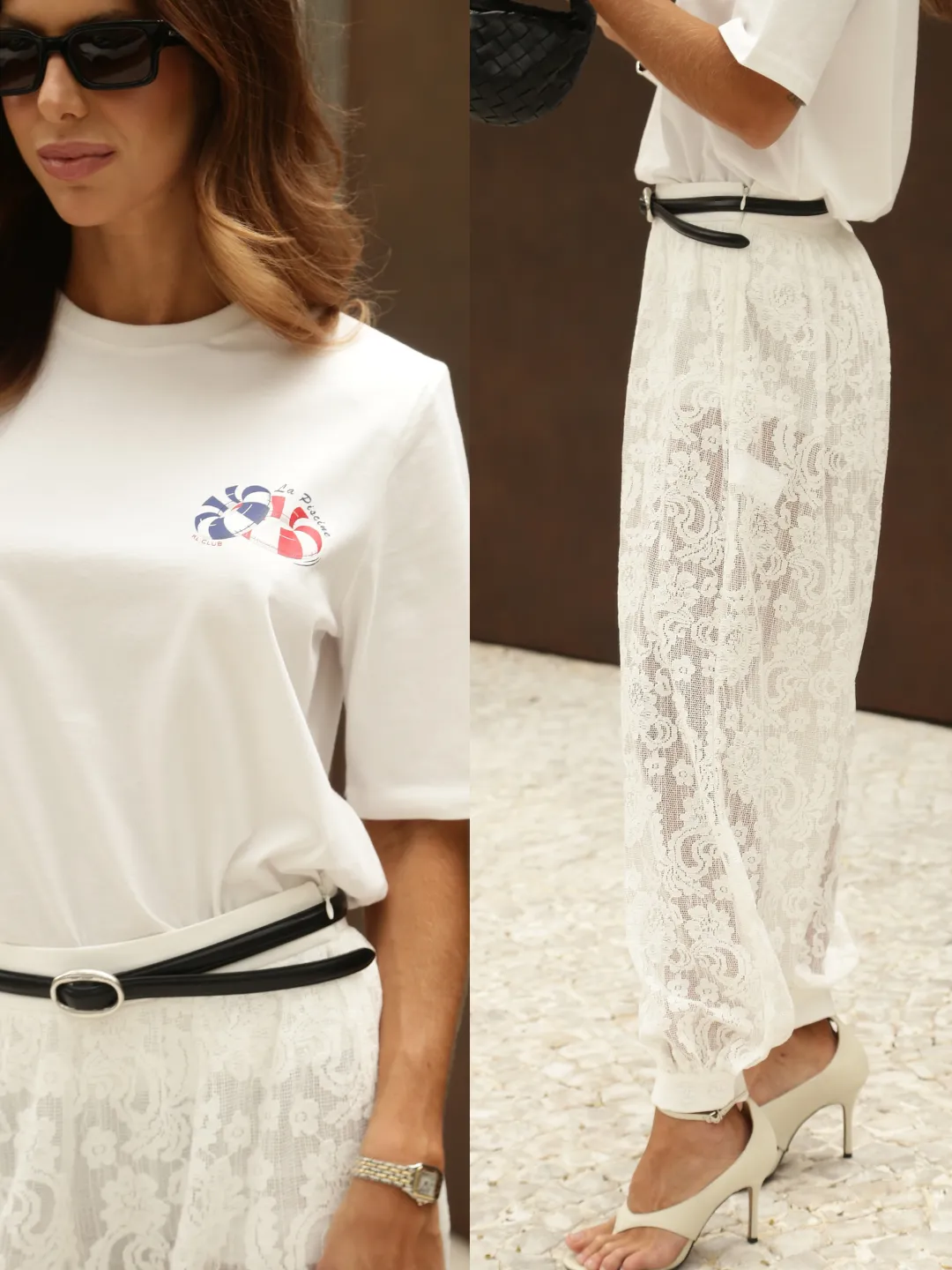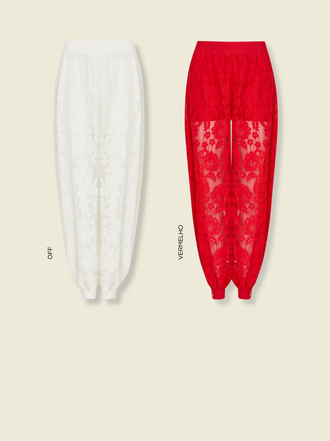 A calça Berenice em renda é a peça que transforma o look com delicadeza, sofisticação e um charme moderno que só uma boa renda consegue transmitir ✨🤍. Com modelagem fluida e levemente afunilada no tornozelo, ela cria uma silhueta elegante e leve, perfeita para mulheres que amam peças diferenciadas, com textura e personalidade. A renda — trabalhada com desenhos ricos e femininos — traz transparência na medida certa, revelando de forma sutil o que está por baixo e garantindo um visual refinado, nada óbvio e extremamente chic. O cós estruturado equilibra o caimento romântico da renda, tornando a peça versátil para produções tanto casuais quanto mais sofisticadas. Termos como calça Berenice, renda, moda feminina e calça elegante surgem naturalmente, reforçando seu apelo artesanal e contemporâneo.