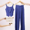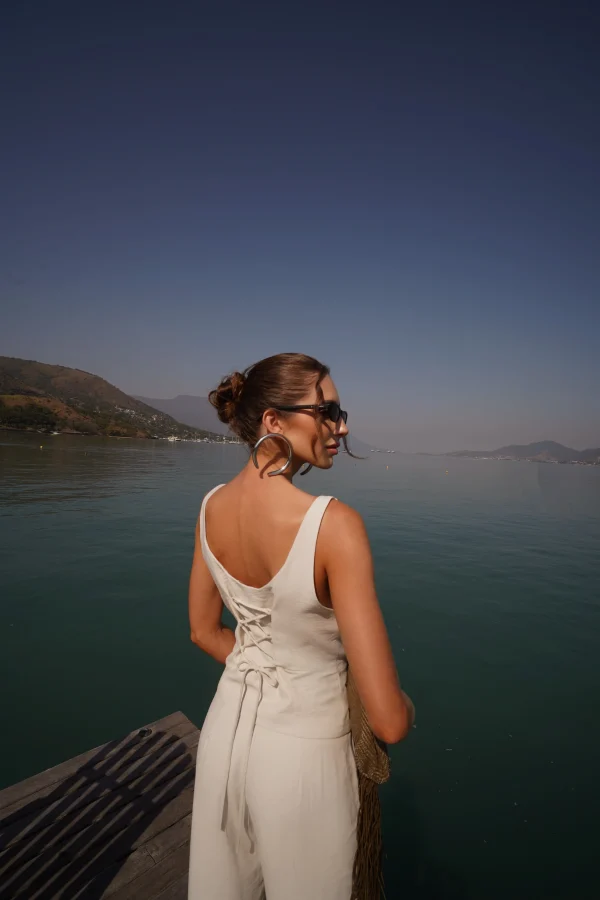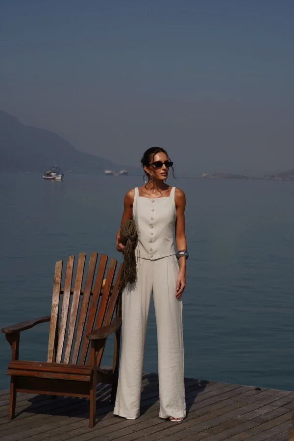 💡 Dica de uso: combine com um body ajustado ou até mesmo com uma camiseta básica de malha e sandália rasteira. O contraste entre o casual e o alfaiatado cria uma produção moderna e descomplicada.