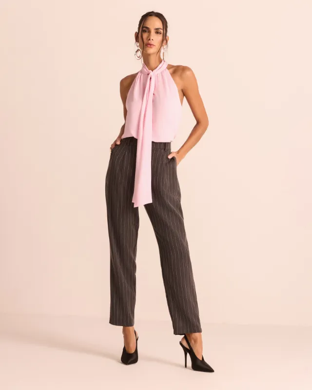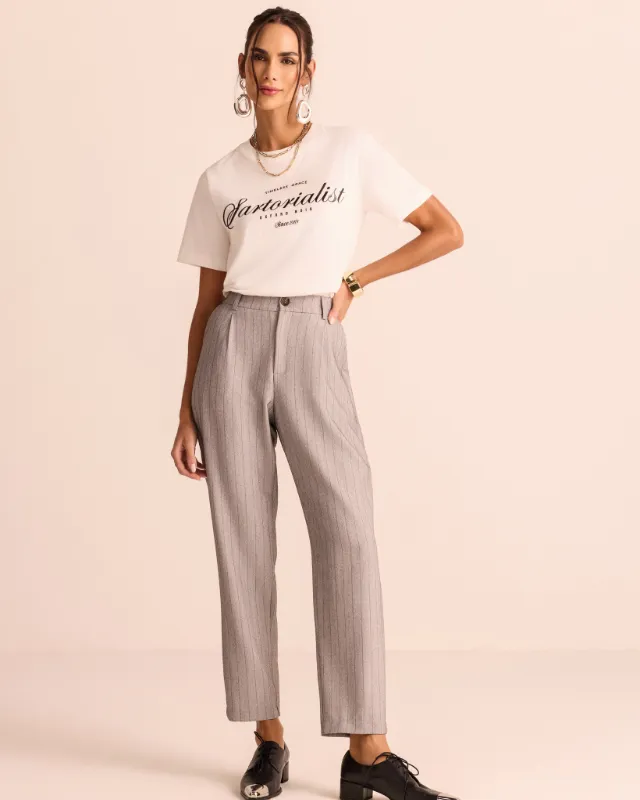 Dica de estilo 💡: combine essa calça feminina de alfaiataria com blusas de tecidos leves, como cetim ou crepe, para um contraste elegante, ou use com camisa estruturada e salto fino para um look de trabalho poderoso e atual.