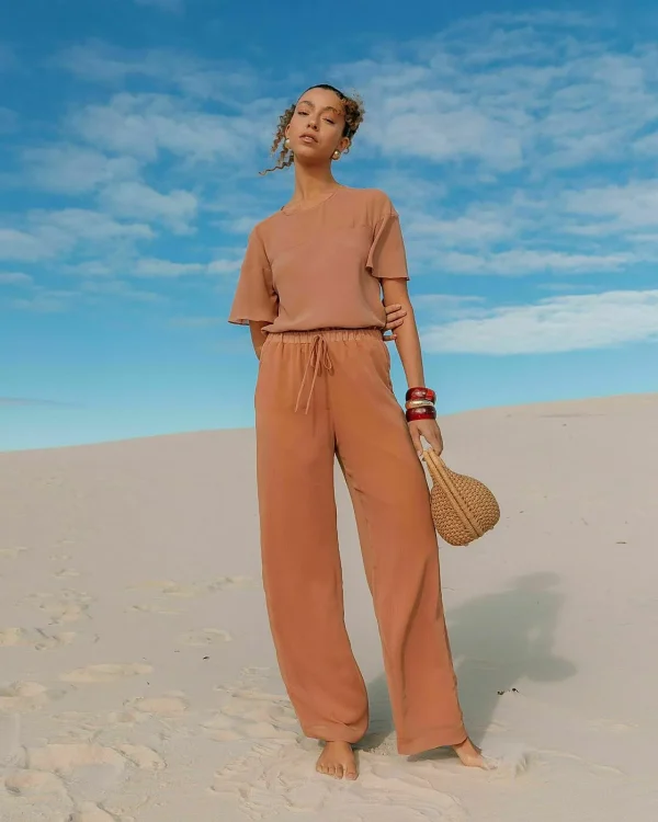 É daquelas calças que acompanham do dia solar na praia até um jantar casual, sempre com frescor e elegância.