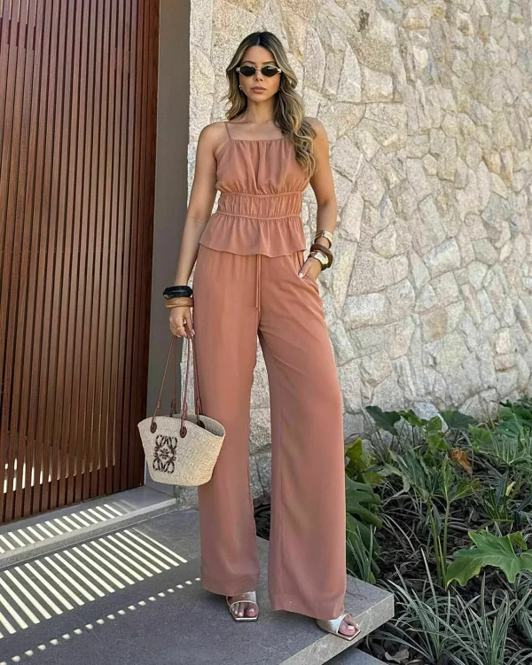 ✨ Dica de uso: combine com uma camisa de linho oversize e rasteiras minimalistas para um look chic descontraído. Para a noite, troque por uma blusa de seda ajustada e salto fino — a calça ganha outra leitura imediatamente.