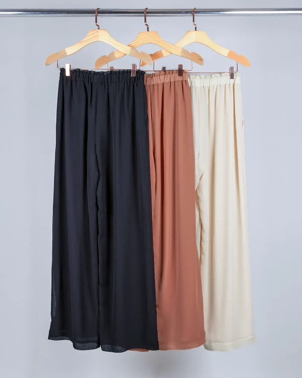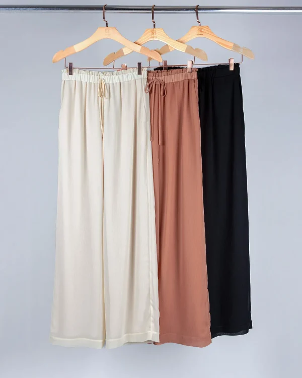 A leveza do chiffon traduzida em uma peça versátil e atemporal. A calça em chiffon yorio tem caimento fluido e movimento elegante a cada passo. O cós com elástico e tiras para amarração garante conforto absoluto sem perder o estilo, criando aquele equilíbrio perfeito entre sofisticação e praticidade. O forro traz segurança no vestir, mantendo a transparência delicada do tecido apenas como detalhe de charme.