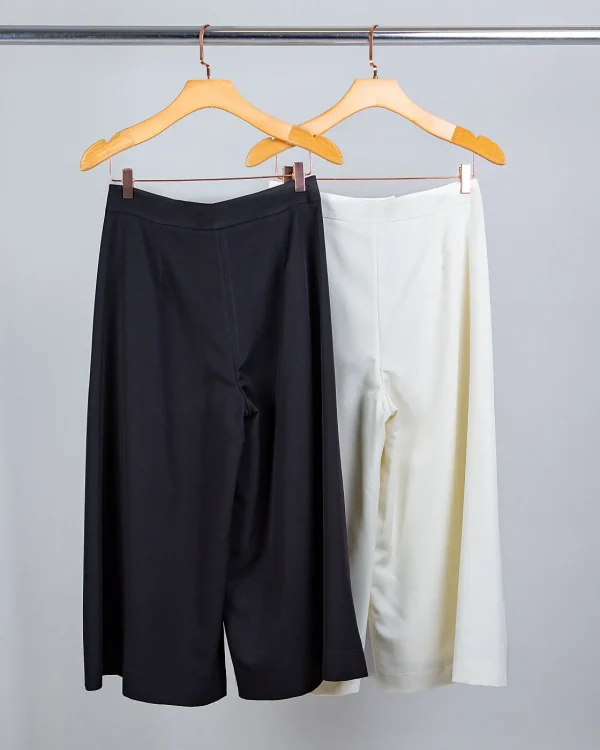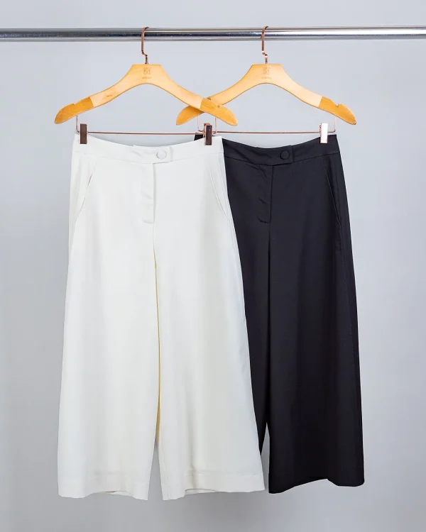 A leveza da alfaiataria em uma versão atual e descomplicada. A calça cropped ampla traz modelagem evasê, que alonga e valoriza a silhueta com movimento fluido e moderno. O detalhe do cós transpassado com botão acrescenta personalidade à peça, fugindo do óbvio sem perder a sofisticação. O tecido estruturado, com toque macio e elastano, garante caimento impecável e conforto para acompanhar o dia todo.