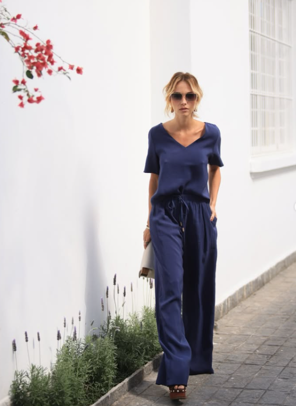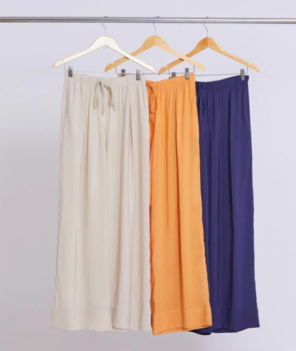 Com modelagem reta e fluida, cós elástico com amarração e tecido leve, ela garante conforto absoluto sem perder a elegância.