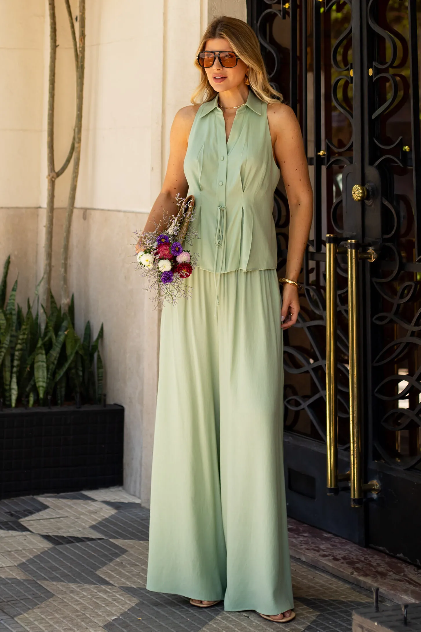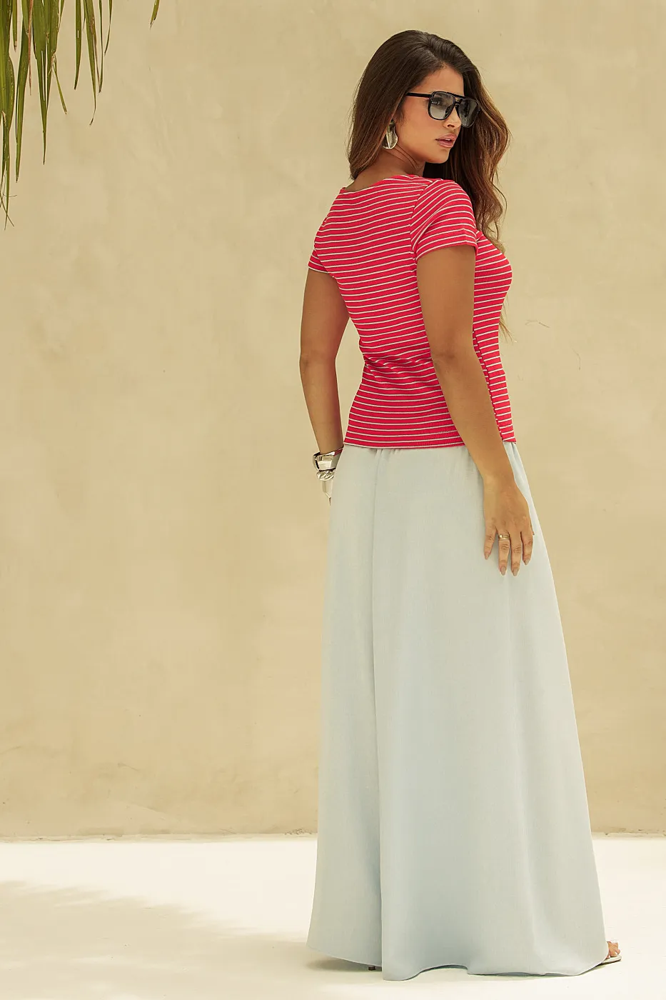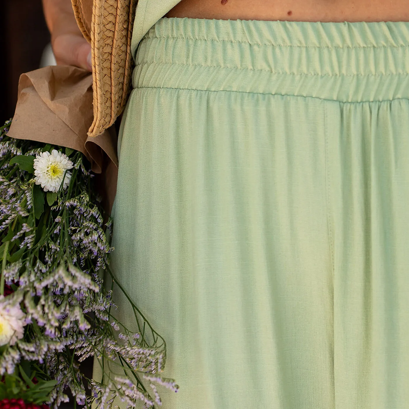 Visco Linho – Tecido leve e fresco – Calça Fluida com Elástico na Cintura. Sua modelagem ampla e fluida cria a ilusão de uma saia longa, oferecendo um visual moderno e elegante. A cintura com elástico garante um ajuste perfeito ao corpo