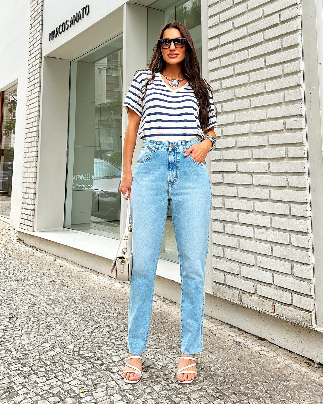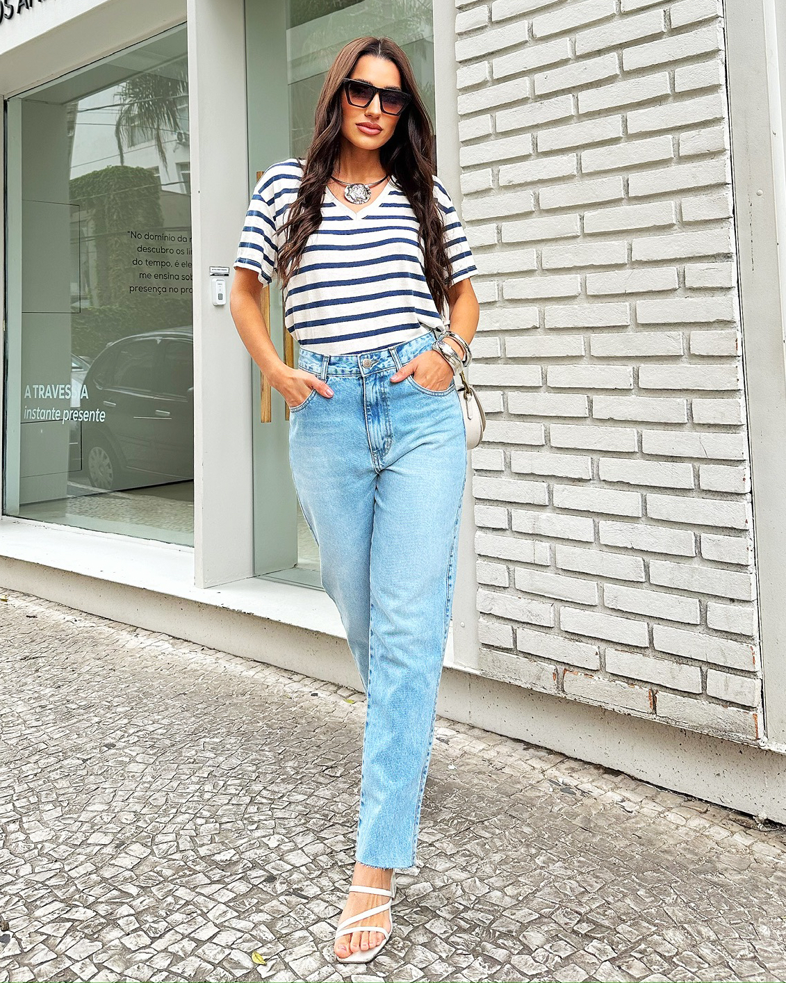 Despojada, atual e cheia de personalidade ✨👖, a Calça Ray é a definição perfeita do jeans moderno que une conforto e estilo para o dia a dia. Com modelagem Mom, ela tem cintura mais alta e caimento levemente soltinho no quadril, trazendo aquele visual cool e effortless que valoriza a silhueta sem apertar. Confeccionada em jeans 100% algodão, a peça possui estrutura firme e toque natural, garantindo durabilidade e um vestir seguro, ideal para acompanhar rotinas intensas com muito conforto 🤍. Os detalhes fazem toda a diferença: o rebite com laço no bolso relógio adiciona charme e feminilidade ao visual, enquanto a barra a fio reforça a proposta moderna e despojada da peça, trazendo um ar jovem e urbano 🌿. A calça mom jeans feminina perfeita para composições casuais cheias de estilo, que funcionam tanto com peças básicas quanto com produções mais elaboradas. Como dica de estilo 💡, use a Calça Ray com camiseta ou camisa levemente por dentro da peça e finalize com tênis ou sandália flat para um look moderno, ou combine com blusa de tecido fluido e salto bloco para um visual casual chic.