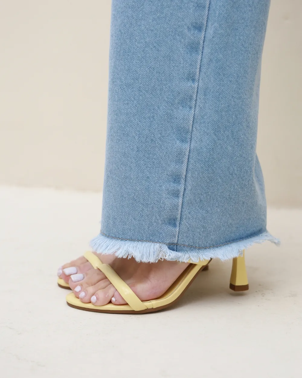Palavras-chave: calça jeans reta, calça jeans feminina, jeans azul claro, barra desfiada, moda casual chic, calça moderna, jeans sofisticado.