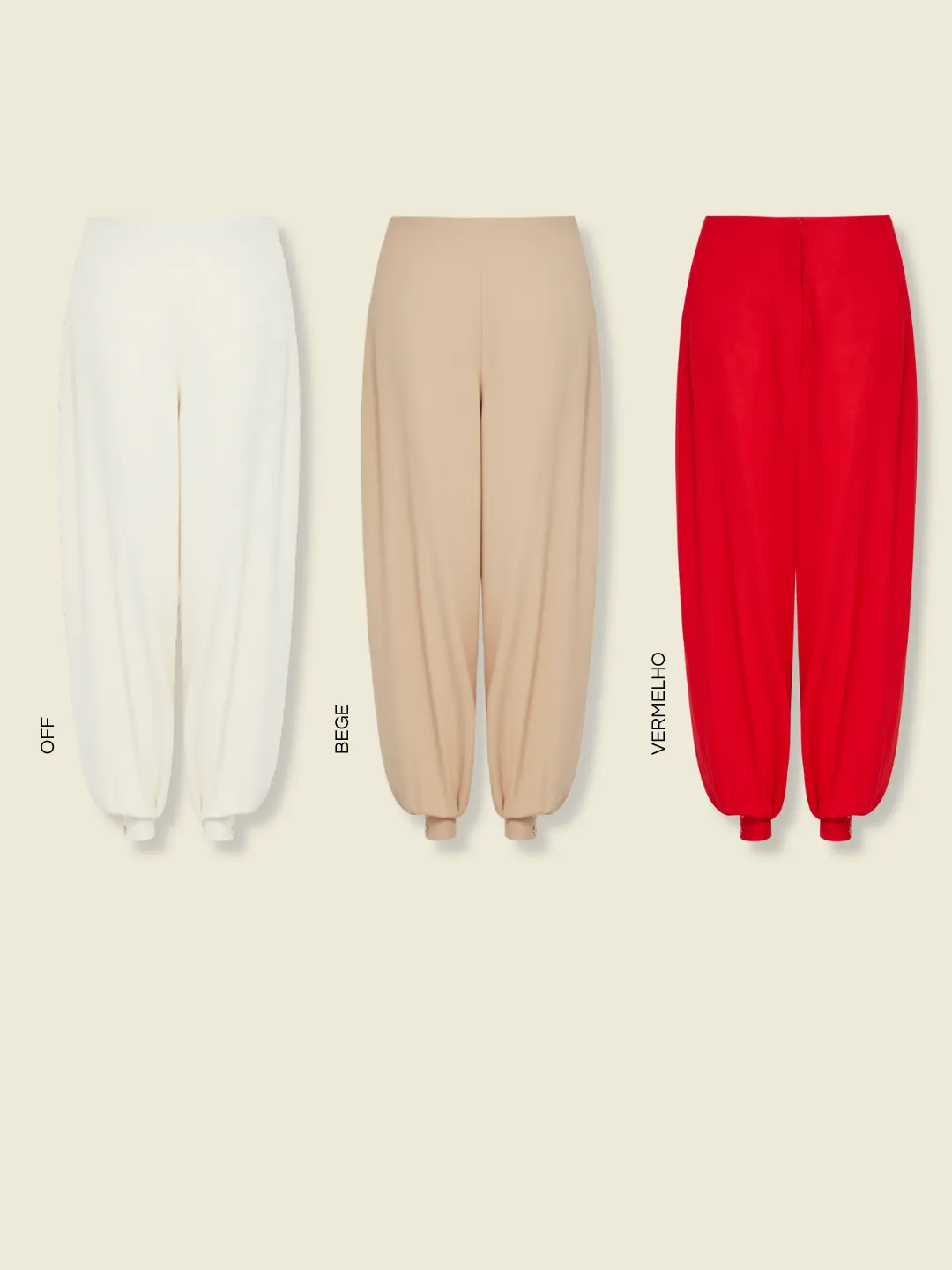 Ficha técnica: confeccionada em viscolinho (mistura de viscose e linho, com proporção variável conforme lote), sem forro, modelagem ampla e fluida com cós alto, cor clara (varia conforme coleção), produzida no Brasil, lavagem à mão ou em ciclo delicado para preservar textura, caimento e durabilidade das fibras naturais.