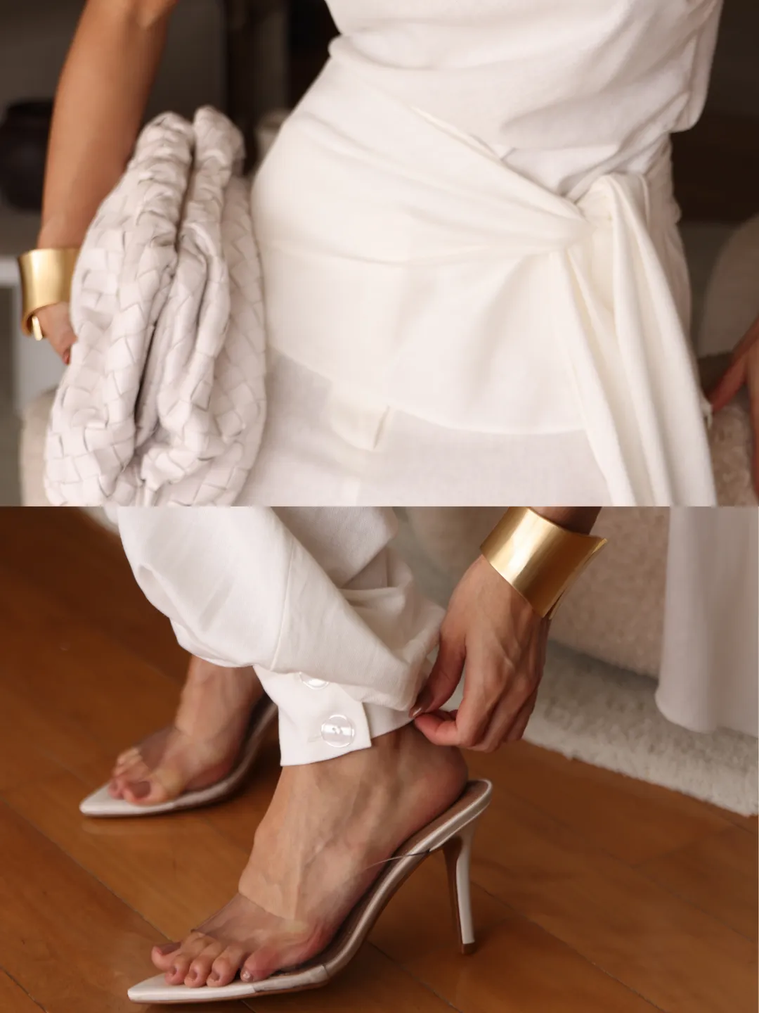 Para criar uma proposta diferente da foto, experimente combiná-la com uma regata de tricot fininha em tom pastel, blazer off-white estruturado e sandálias de tiras delicadas 🤍✨. O resultado é um look fresco, elegante e perfeito para almoços especiais, eventos diurnos ou dias em que você deseja transmitir sofisticação com naturalidade.