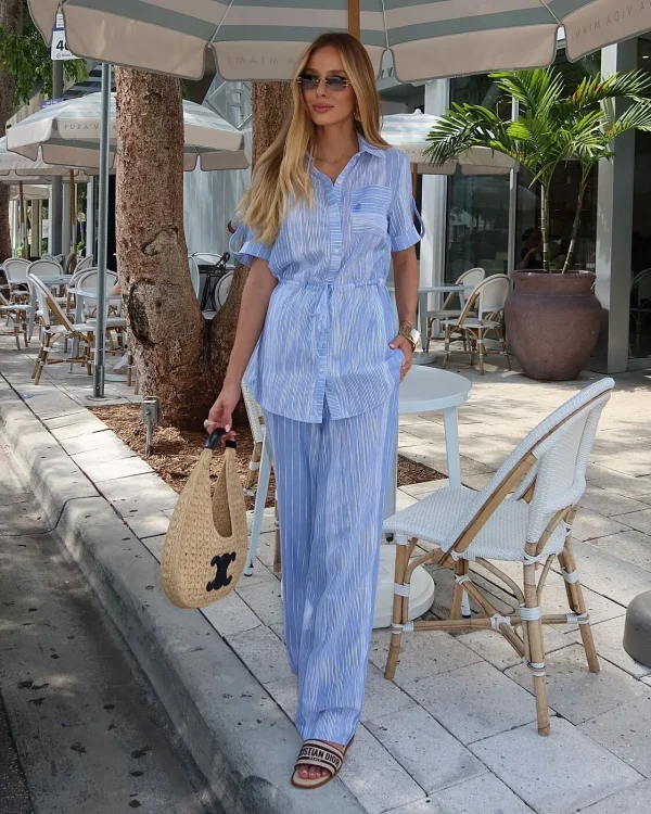 ✨ Dica de uso: além do conjunto da foto, combine com uma regata de seda branca e rasteirinhas minimalistas. O look fica moderno e descomplicado, ideal para um passeio de fim de semana ou até uma reunião mais casual ao ar livre.